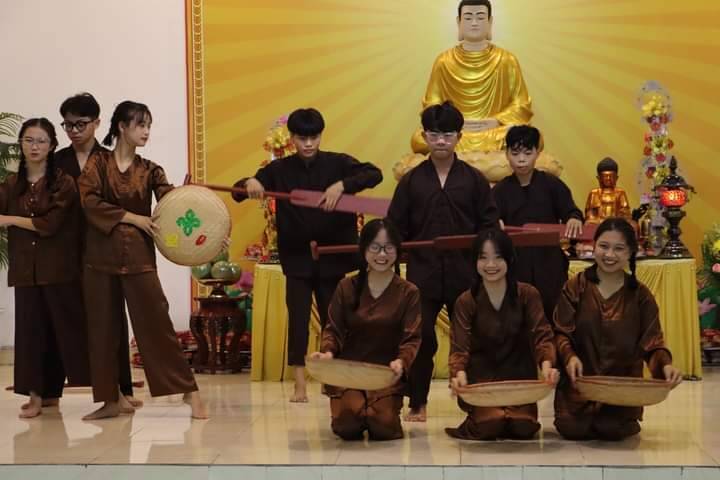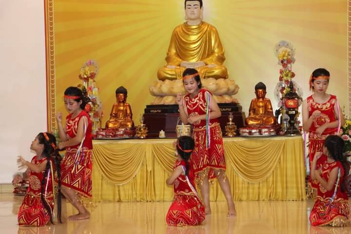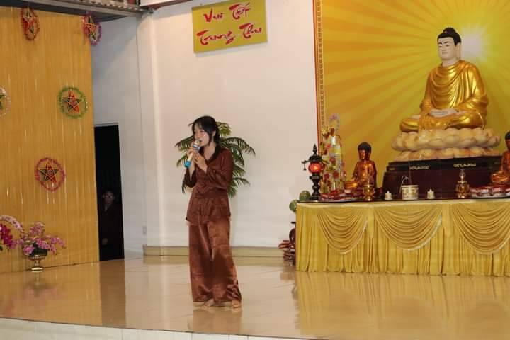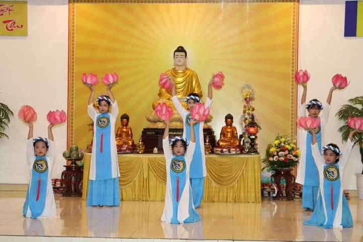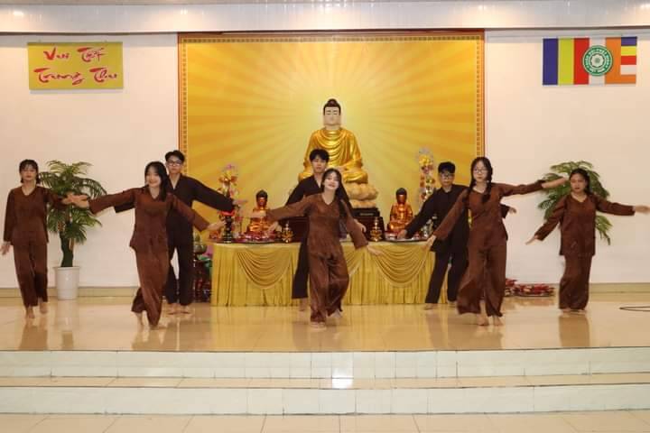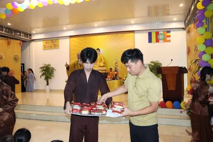Mở đầu là các tiết mục văn nghệ đặc sắc trong những trang phục thân thương và các điệu múa rất đẹp mắt. Sau đó, nhà chùa đã tặng 10 suất quà khuyến học, bánh trung thu và các loại bánh kẹo đến tất cả các em có mặt trong đêm hội.