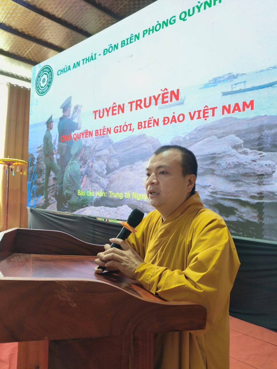 Phát biểu khai mạc, Đại đức Thích Minh Hải nhấn mạnh: tầm quan trọng của Quốc phòng An ninh trong đời sống nhân dân, đặc biệt trong bối cảnh phát triển và công nghệ hiện đại, hội nhập đa dạng. Đồng thời nhắc nhở việc chấp hành chủ trương của Đảng, thực hiện pháp luật của Nhà nước cũng là người con Phật giữ gìn giới luật và là công dân gương mẫu ở địa phương. Bác sĩ Đậu Vi Sơn chia sẻ về chương trình lan tỏa ánh sáng từ bi, khám sức khỏe miễn phí vì cộng đồng mang tính nhân văn sâu sắc và tinh thần giáo lý của Đức phật, đặc biệt sự kiện diễn ra trong khuôn khổ Lễ hội Quan Âm Nam Hải.