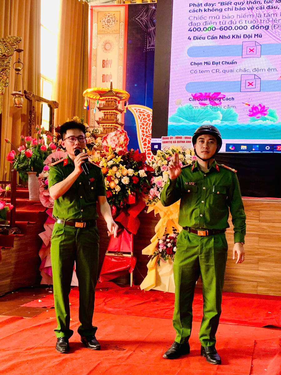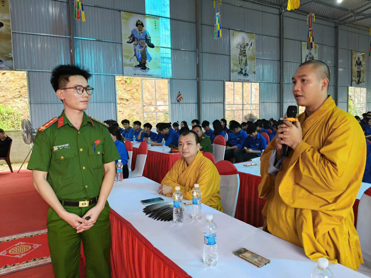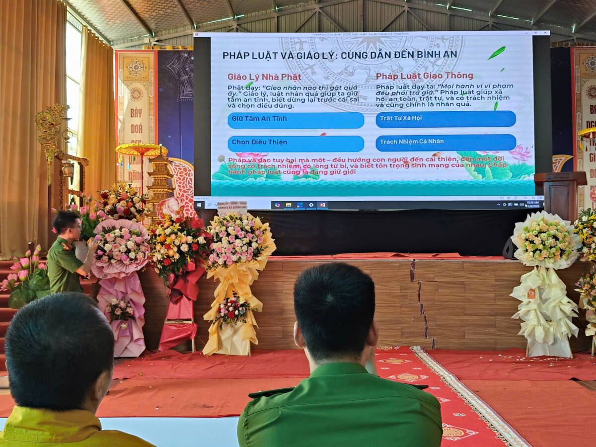 Tiếp theo, Hội nghị đã được nghe Đại úy Chu Văn Giáp chia sẻ chuyên đề: “An toàn giao thông – giữ tâm bình an”. Đại úy đã kết hợp giữa giáo lý và giới luật Phật chế, cùng với Nghị định 168/2024/NĐ-CP của Chính phủ để có cách nhìn nhận và thực hành, chấp hành khi tham gia giao thông an toàn cho chính bản thân, gia đình và xã hội. Để thay đổi không khí, tránh nhàm chán là các tiết mục văn nghệ giao lưu quần chúng: “Linh thiêng cổ tự Ngọc Lâm và Tôi yêu Tổ quốc tôi”.