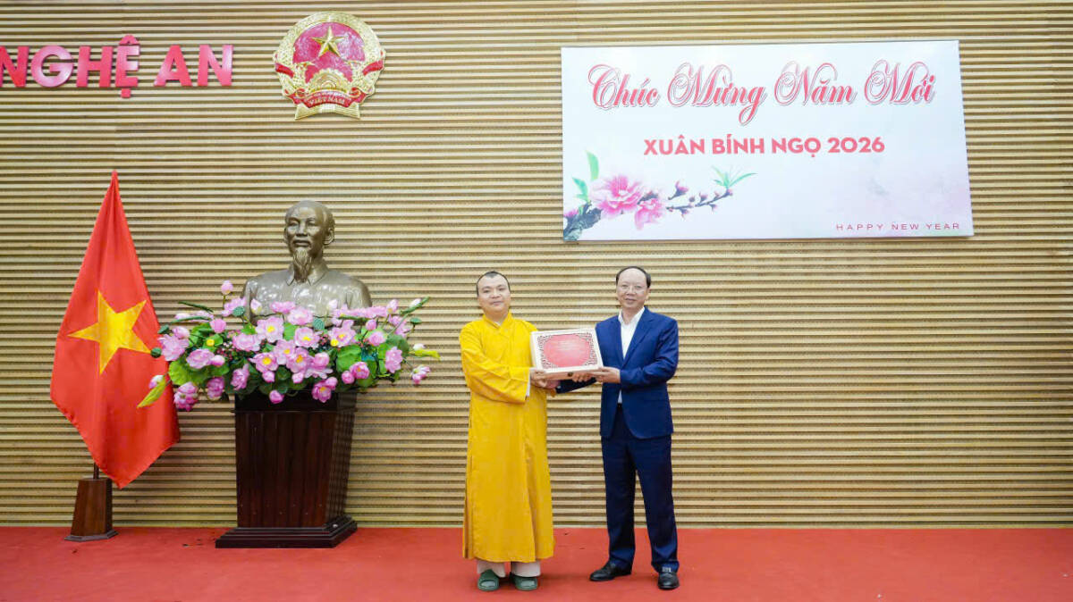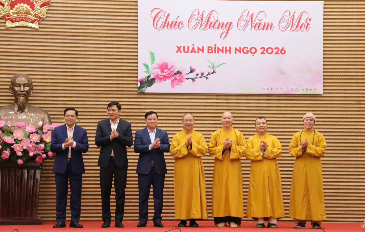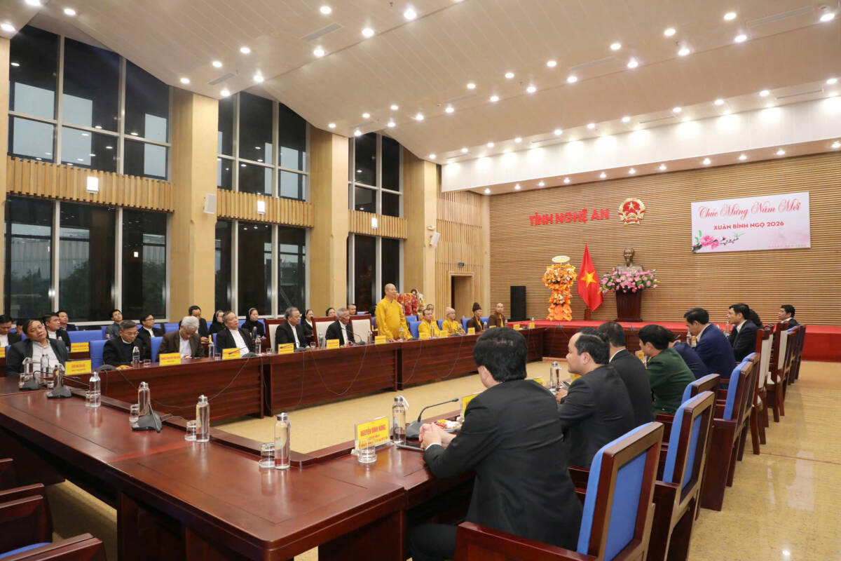 PGĐS – Chiều 09/02/2026, nhân dịp năm mới 2026 và chuẩn bị đón Tết Nguyên đán Bính Ngọ, Ban Trị sự Giáo hội Phật giáo tỉnh và Toà Giám mục Giáo phận Vinh đến thăm, chúc mừng Tỉnh ủy, HĐND, UBND, Ủy ban MTTQ tỉnh Nghệ An.