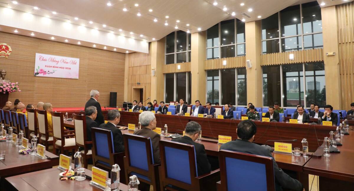 Chia sẻ những mục tiêu phát triển của tỉnh trong năm 2026 và nhiệm kỳ 2025-2030, Bí thư Tỉnh uỷ cho rằng, đây là mục tiêu rất cao. Vì vậy, mong các vị giám mục, hoà thượng, linh mục, tăng ni, đồng bào giáo dân và phật tử tỉnh nhà tiếp tục quan tâm, hỗ trợ, đồng hành cùng với cấp ủy, chính quyền các cấp để thực hiện thắng lợi các mục tiêu phát triển kinh tế – xã hội, xây dựng Đảng, xây dựng hệ thống chính trị trong năm 2026. Bí thư Tỉnh uỷ cũng mong các vị giám mục, hoà thượng, linh mục, tăng ni, phật tử tiếp tục quan tâm, tích cực ủng hộ, vận động đồng bào giáo dân và phật tử thực hiện đầy đủ quyền và nghĩa vụ trong cuộc bầu cử đại biểu Quốc hội và HĐND các cấp nhiệm kỳ 2026-20301 trên địa bàn tỉnh.