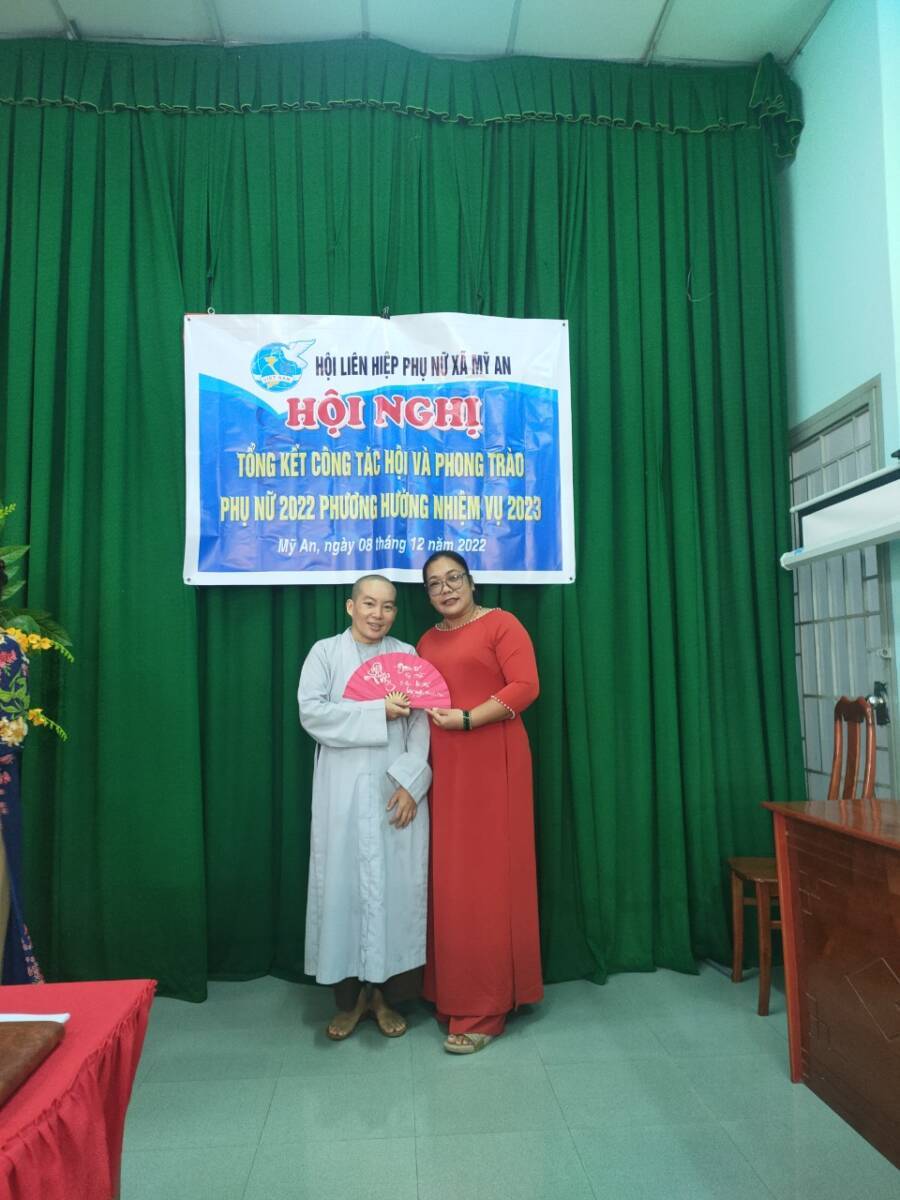 Hội LHPN Xã Mỹ An ghi nhận và trân trọng những đóng góp to lớn của Sư Cô Thích Nữ Liên Hiền trong thời gian qua. Những hoạt động của sư cô có ý nghĩa to lớn, đóng góp rất nhiều cho công tác hội và phong trào phụ nữ xã nhà, trong thời gian tới ý nguyện của sư cô là sẽ tiếp tục đồng hành san sẻ yêu thương giúp đỡ cho phụ nữ và trẻ em nhằm giảm bớt khó khăn trong cuộc sống ./.