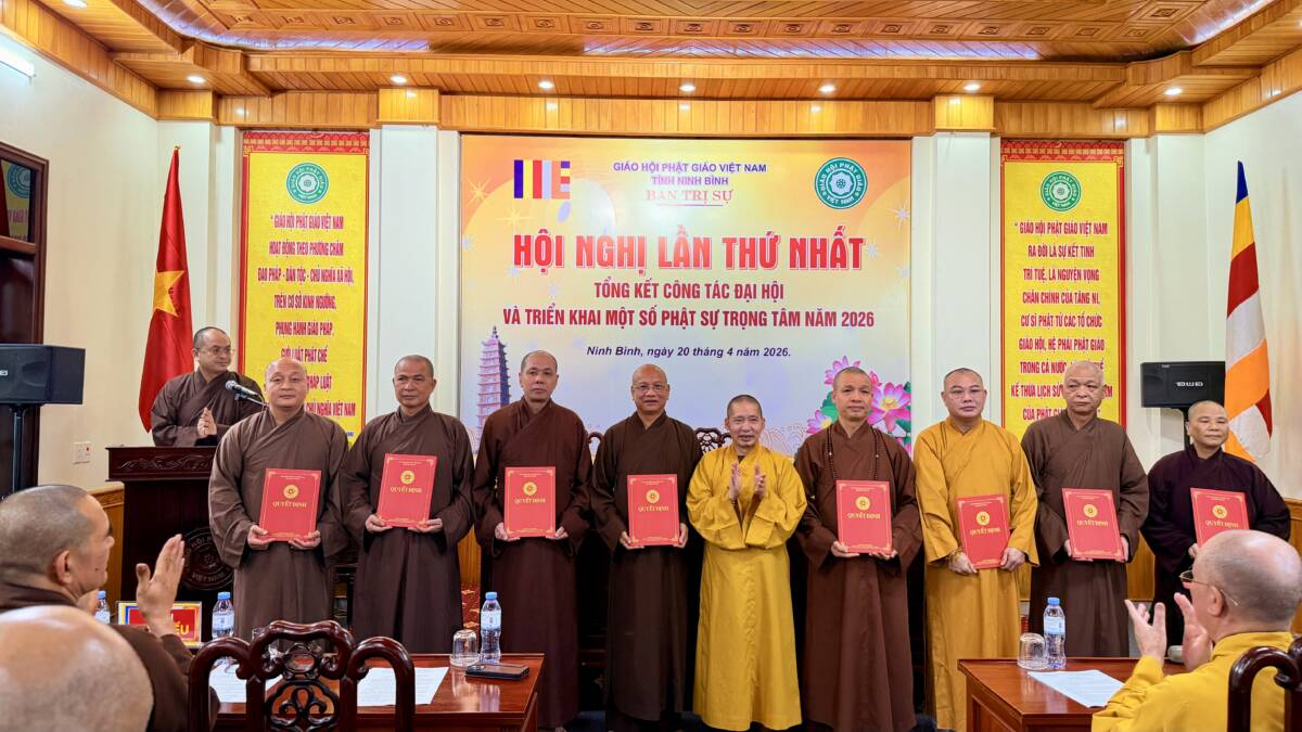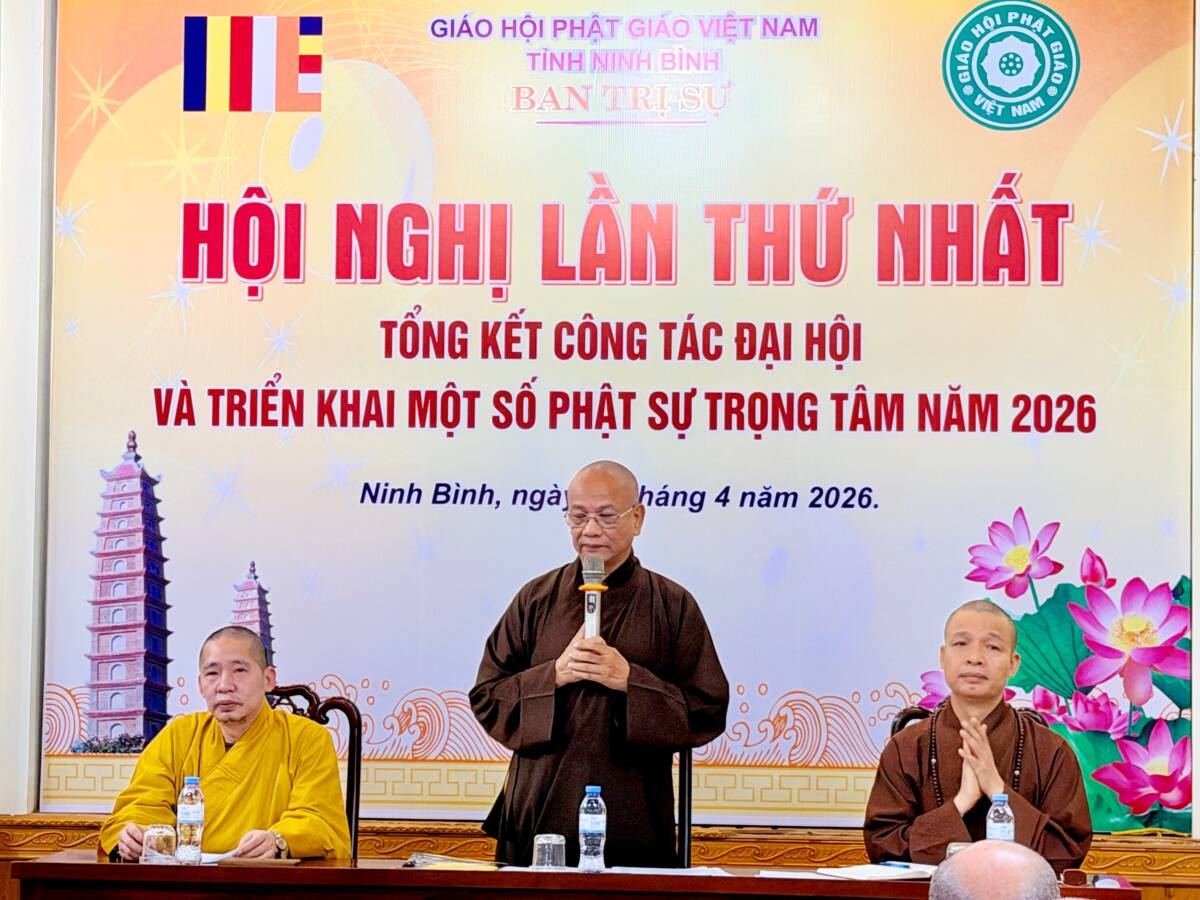 Sáng ngày 20/04/2026, tại trụ sở Ban Trị sự GHPGVN tỉnh Ninh Bình, Ban Trị sự Phật giáo tỉnh đã trang nghiêm tổ chức Hội nghị lần thứ nhất nhằm tổng kết công tác Đại hội đại biểu Phật giáo tỉnh lần thứ I, nhiệm kỳ 2026–2031, đồng thời triển khai một số Phật sự trọng tâm trong năm 2026.