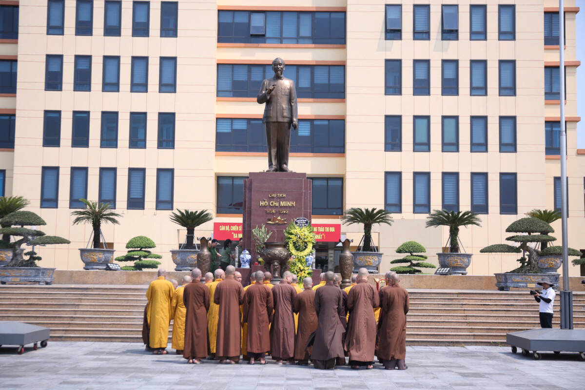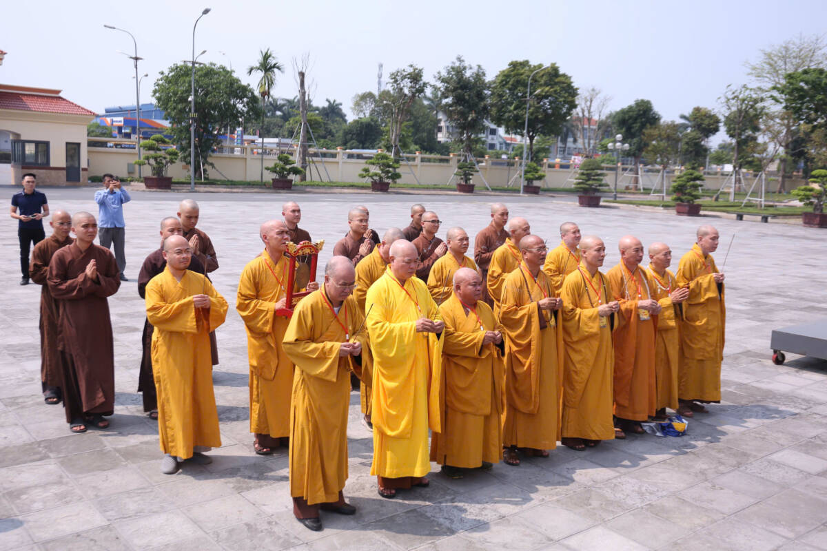 Trước đó, đầu giờ chiều cùng ngày, đoàn đại biểu đã đến thăm, dâng hương tại Trụ sở Công an tỉnh, tưởng niệm tại Tượng đài Chủ tịch Hồ Chí Minh; đồng thời vân tập tại Chính điện Thiền viện Trúc Lâm Thiên Trường, thành kính dâng hương, cầu nguyện cho Đại hội được thành tựu viên mãn.