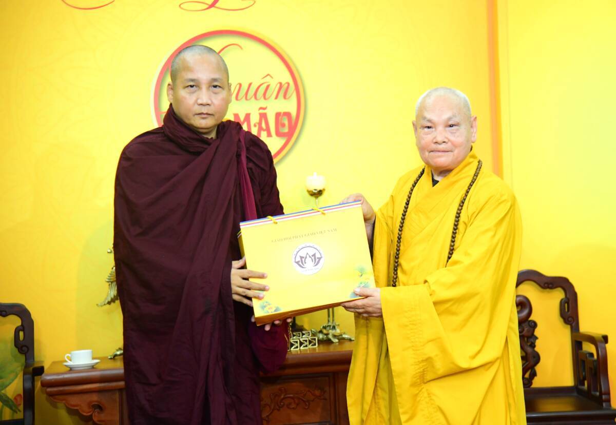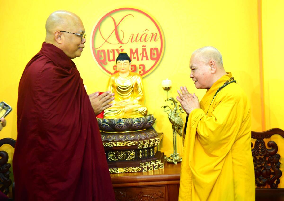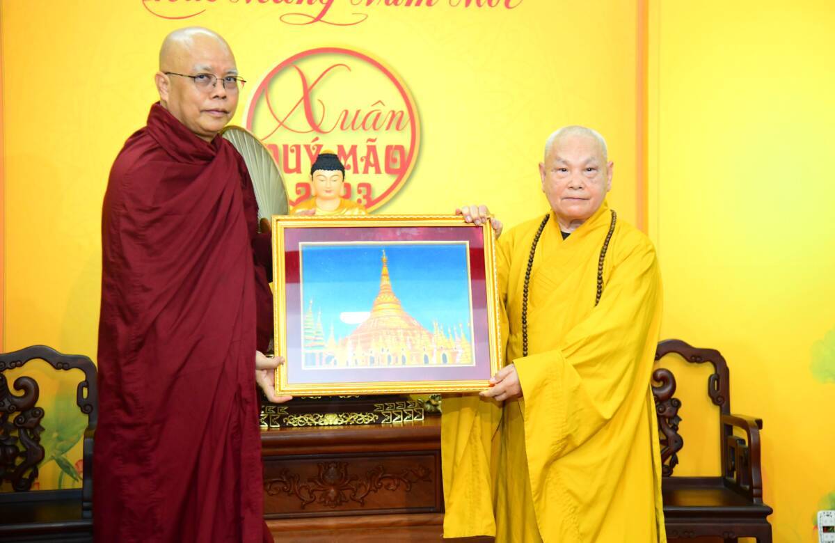 Chiều 23-4, phái đoàn Trường Đại học Quốc tế Truyền bá Phật giáo Nguyên thuỷ Miến Điện (Apyipyi Sainya Theravada Bouddha Thathanapyu Takkato) đã đến chùa Huê Nghiêm (TP.Thủ Đức) thăm, vấn an sức khoẻ Đức Trưởng lão Hoà thượng Thích Trí Quảng – Pháp chủ GHPGVN