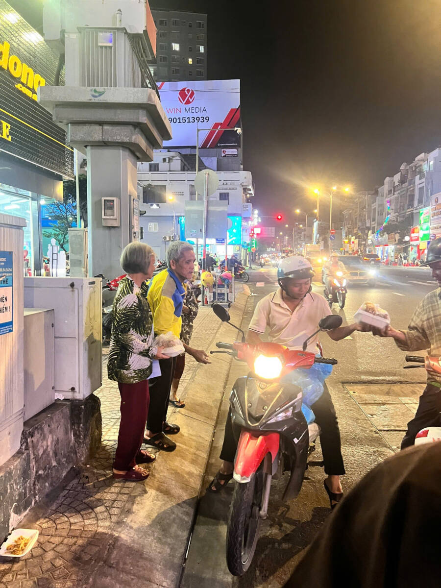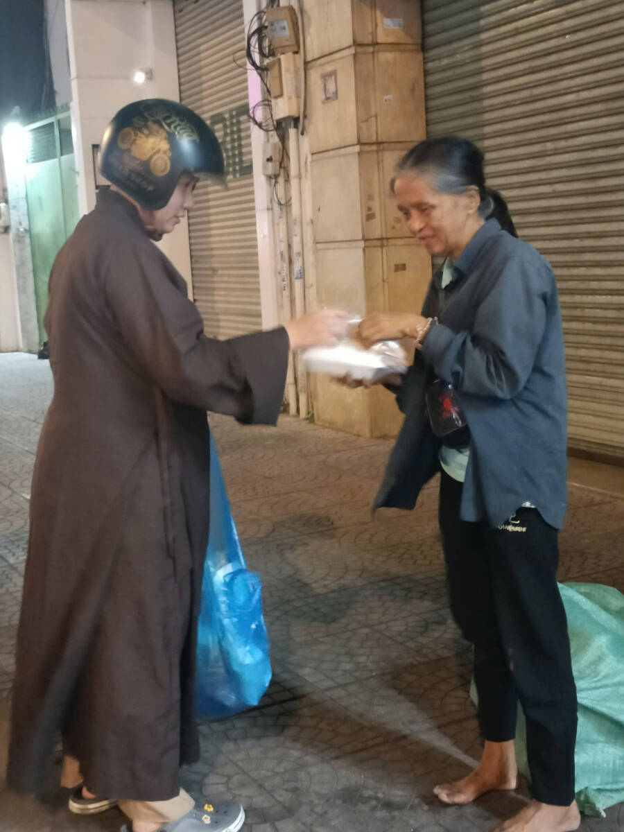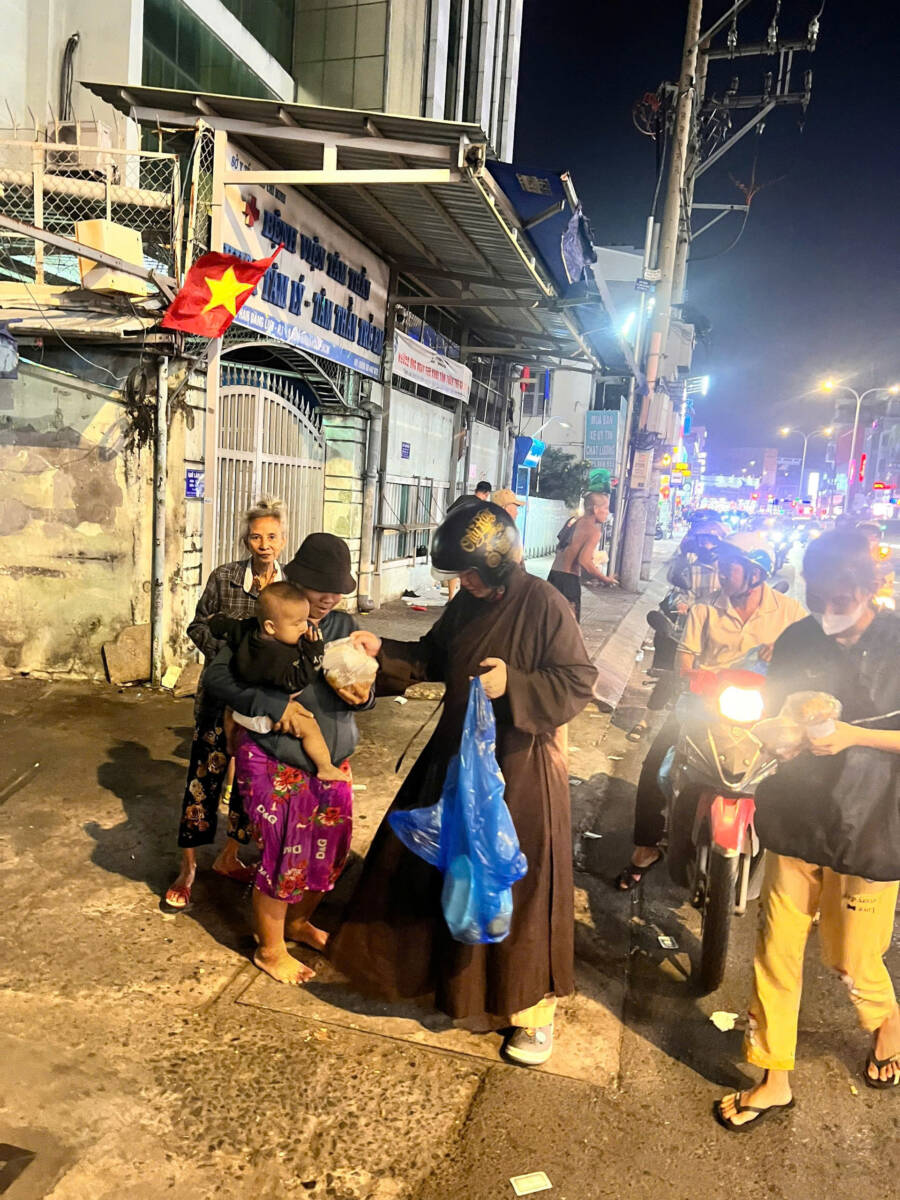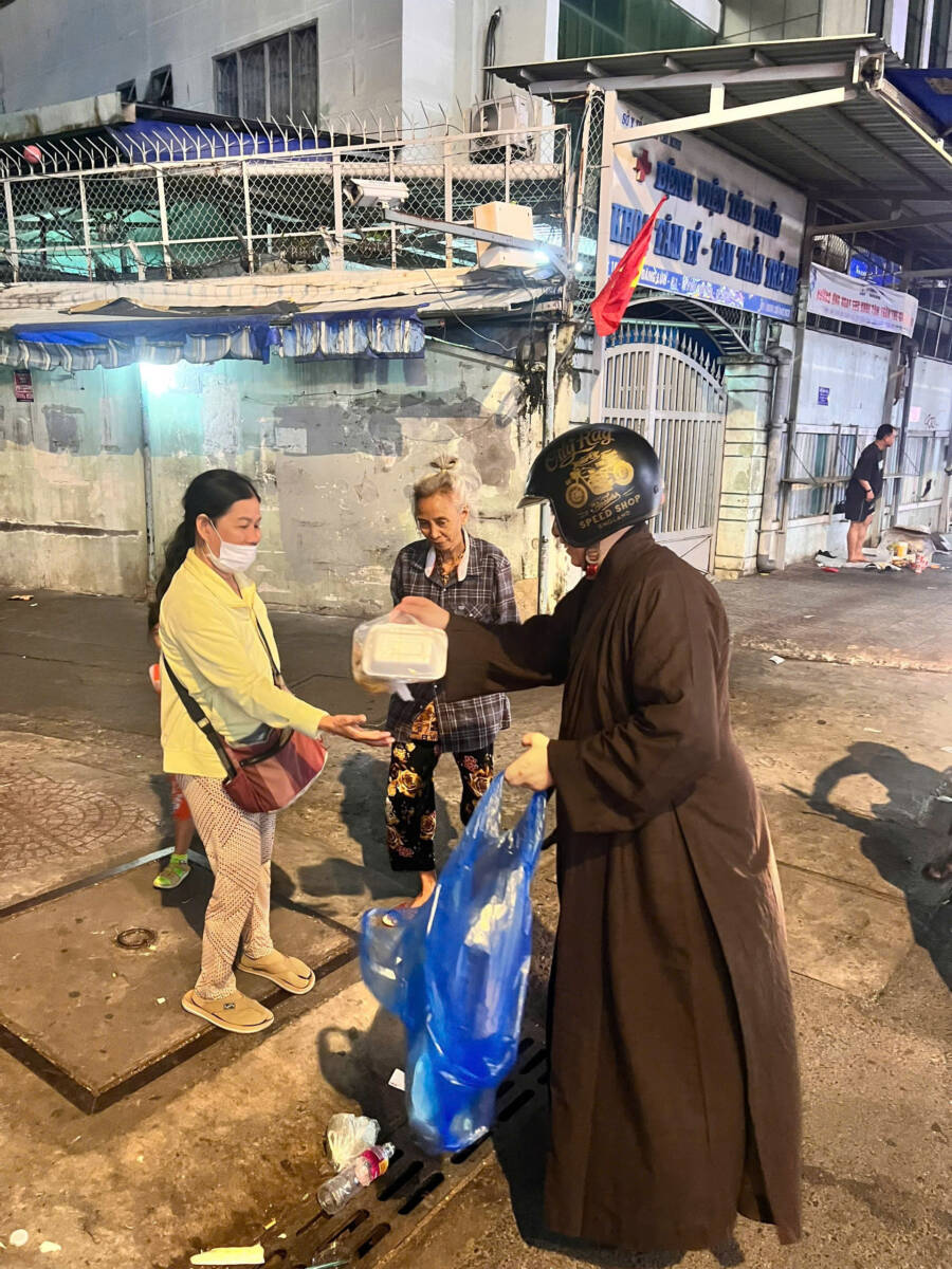 Giữa thời tiết se lạnh, từng phần cơm chay được trao tận tay không chỉ giúp xoa dịu cái đói của thân, mà còn mang lại hơi ấm cho tâm người nhận. Có những ánh mắt ban đầu còn e dè, rồi dần ánh lên niềm vui; có những nụ cười hiền hòa nở ra khi đón nhận phần cơm nghĩa tình. Trong khoảnh khắc ấy, người cho và người nhận không còn sự phân cách, chỉ còn lại sự đồng cảm và tình thương lan tỏa.