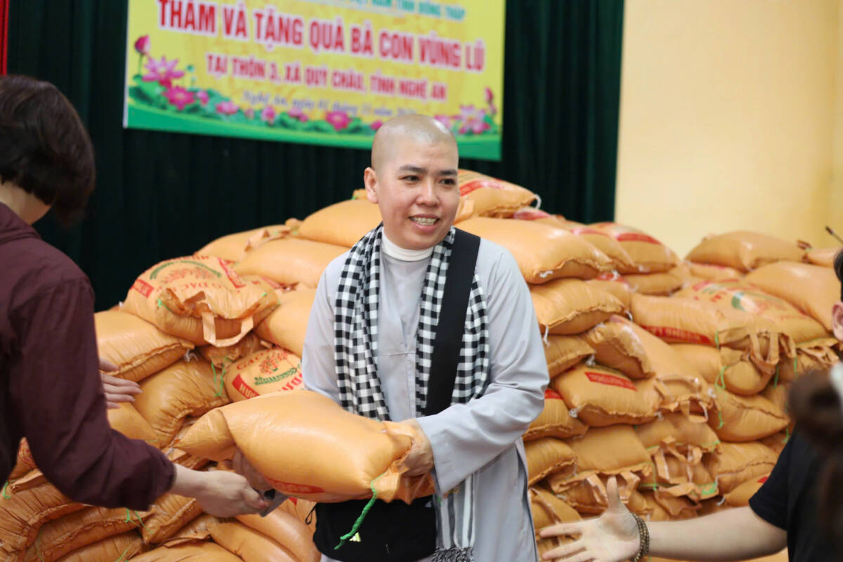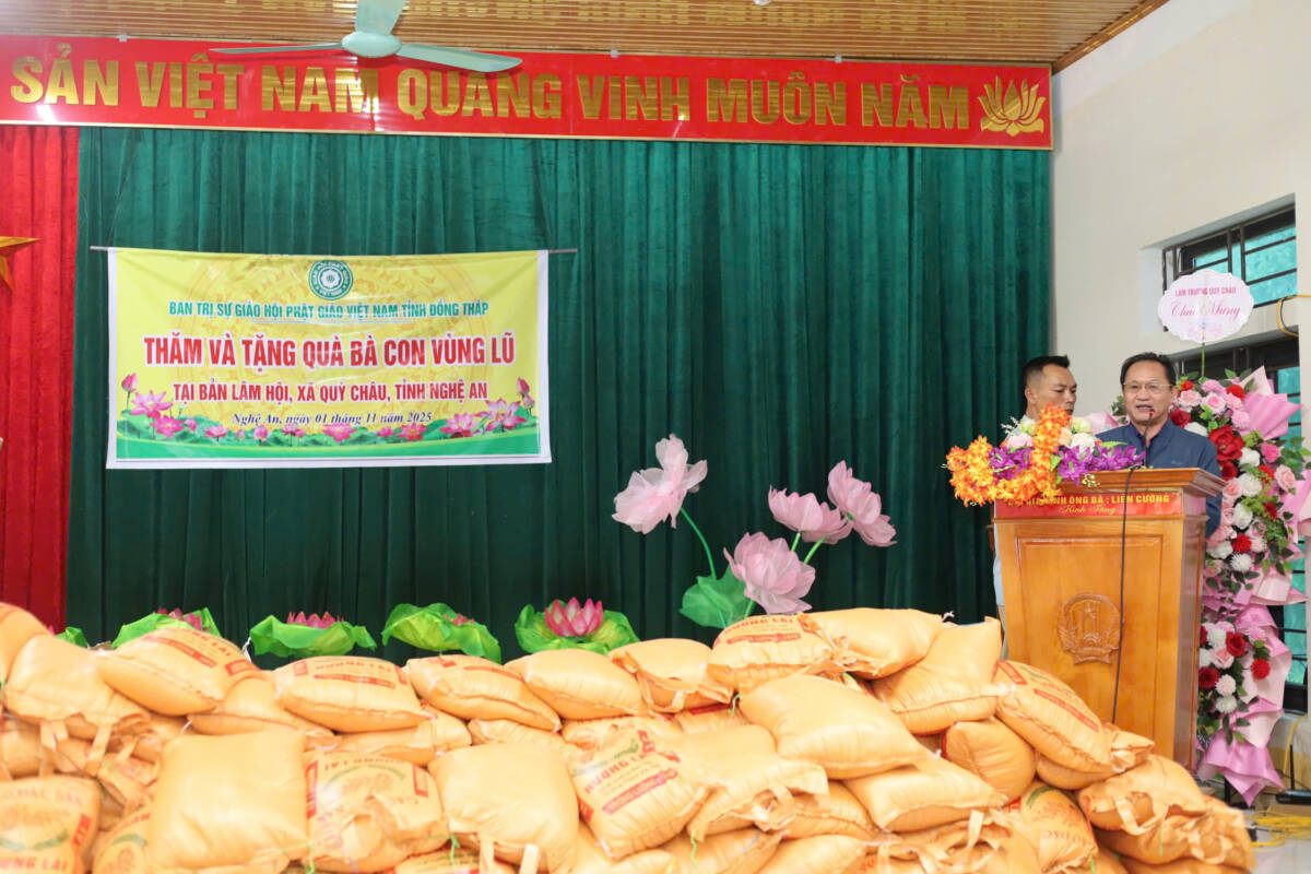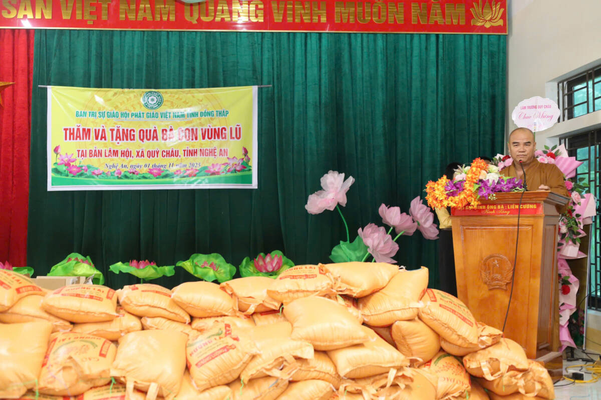 “Mỗi phần quà tuy nhỏ bé nhưng là tấm lòng của Tăng Ni, Phật tử Đồng Tháp gửi gắm đến đồng bào Nghệ An thân thương. Mong rằng quý bà con sớm vượt qua khó khăn, ổn định cuộc sống. Đây không chỉ là sự hỗ trợ vật chất, mà còn là sợi dây kết nối tình người, lan tỏa tinh thần ‘lá lành đùm lá rách’ trong ánh sáng từ bi của Đức Phật.”