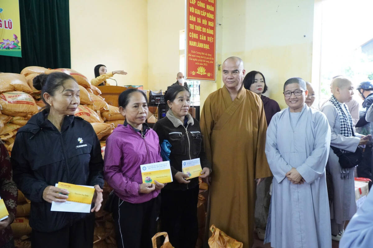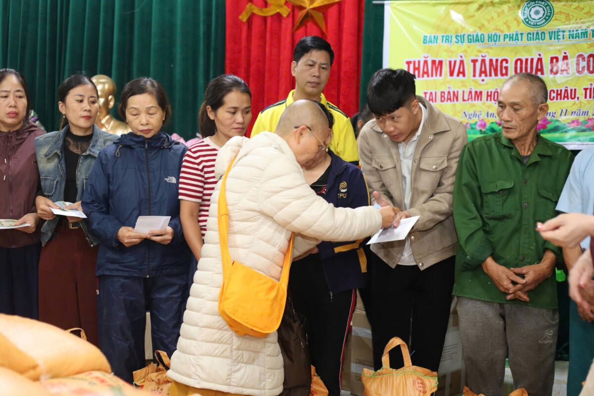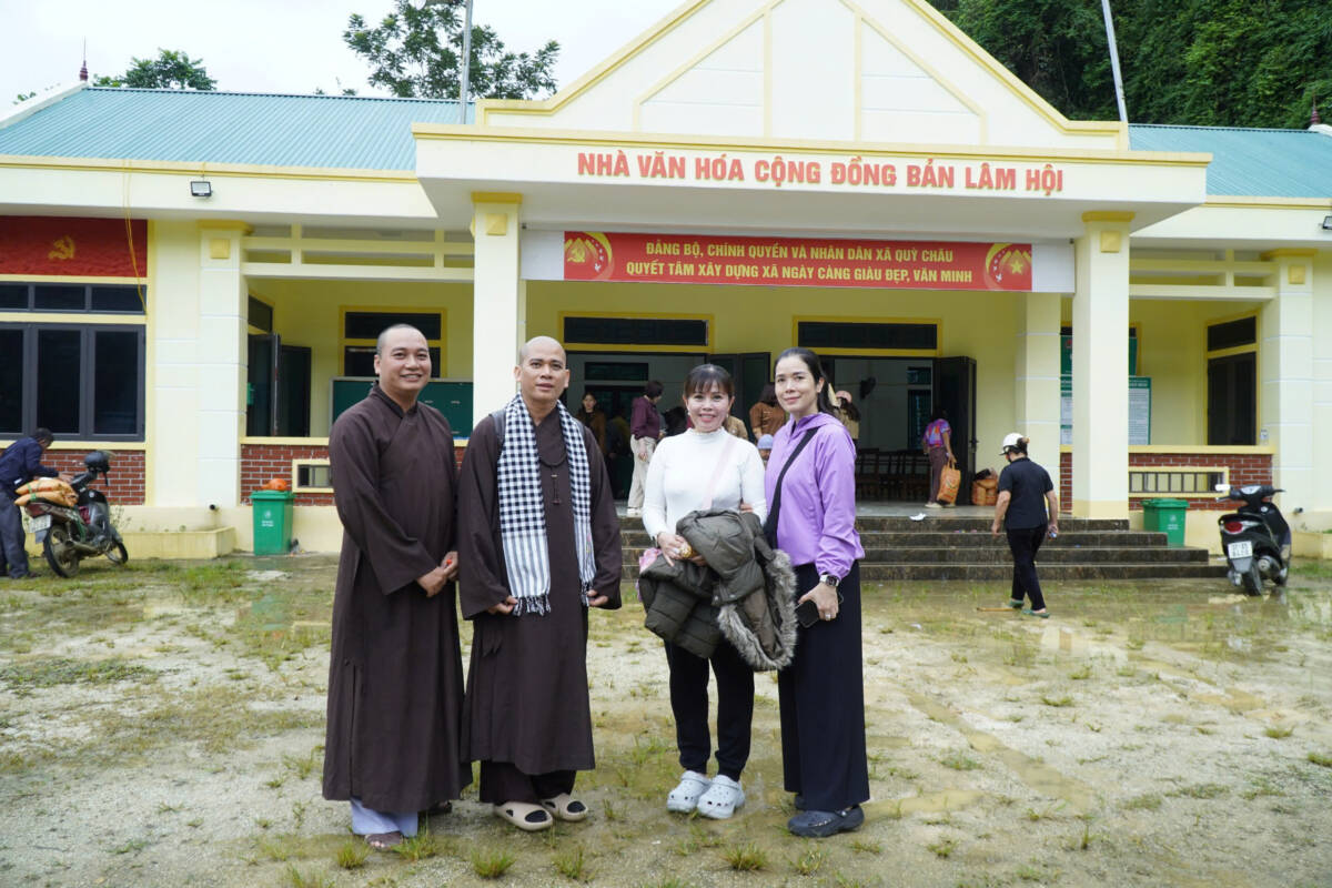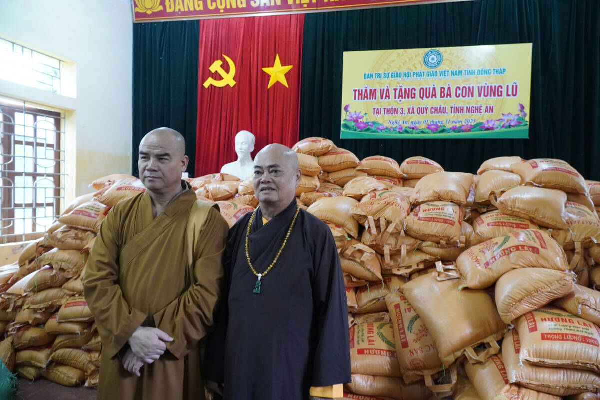 Ngày 1/11 đoàn khởi hành đến Bản Lâm Hội và Thôn 3 thuộc xã vùng cao Quỳ Châu, nơi chịu thiệt hại nặng nề sau bão. Tại 2 địa điểm, đoàn đã trao 1000 phần quà gồm: tiền mặt trị giá 1.000.000 đồng/phần do Ban Trị sự GHPGVN tỉnh Đồng Tháp ủng hộ, cùng gạo, mì, nhu yếu phẩm do chư Tăng Ni và Phật tử các tự viện chung tay đóng góp. Tổng trị giá hơn 1 tỷ đồng.