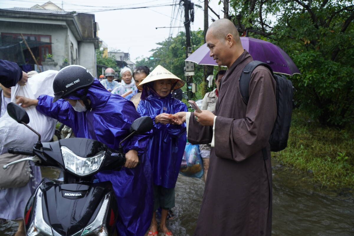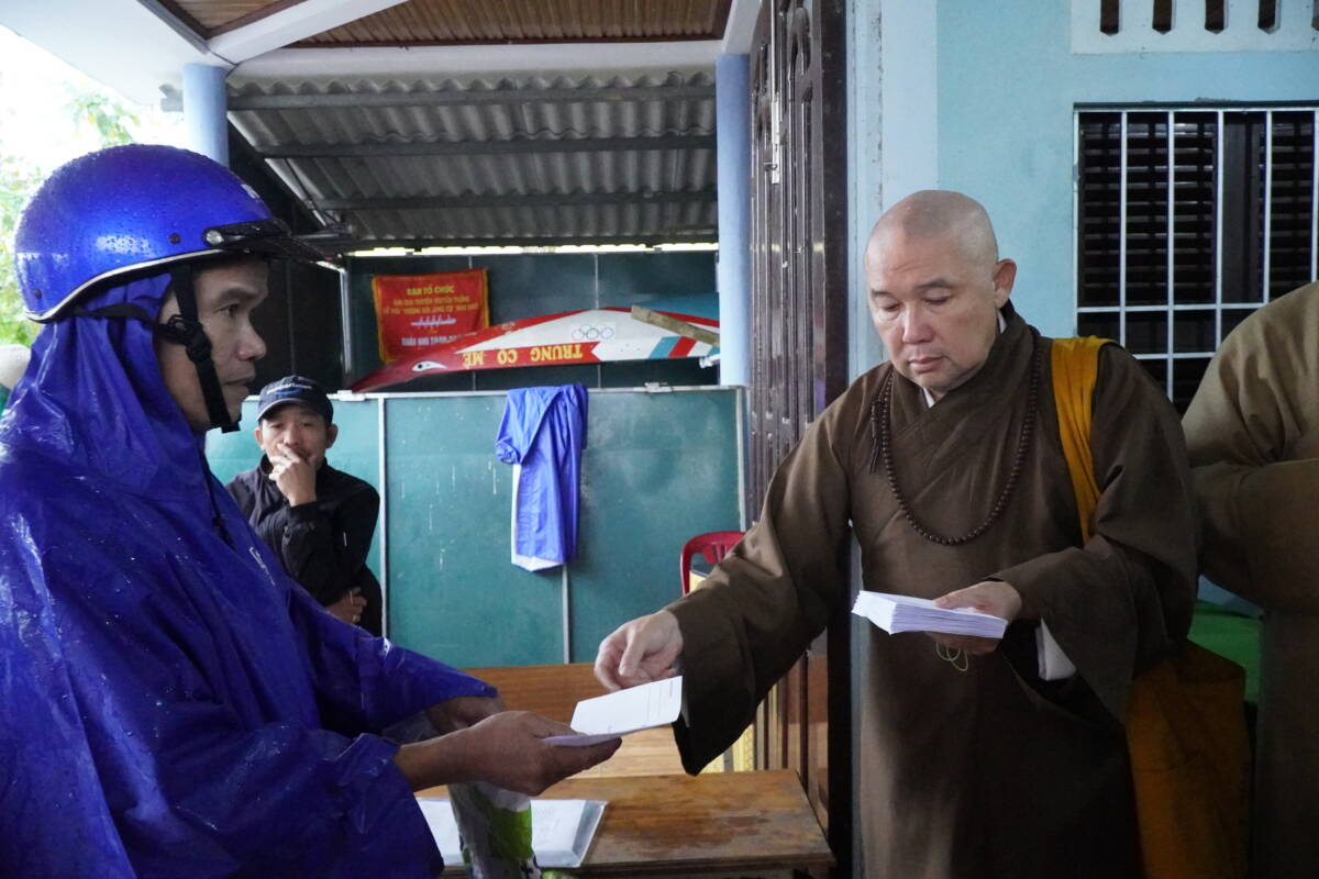 Thượng tọa gửi lời tri ân đến Giáo hội Phật giáo Huế và chính quyền sở tại đã tạo điều kiện để công tác cứu trợ diễn ra thuận lợi.
