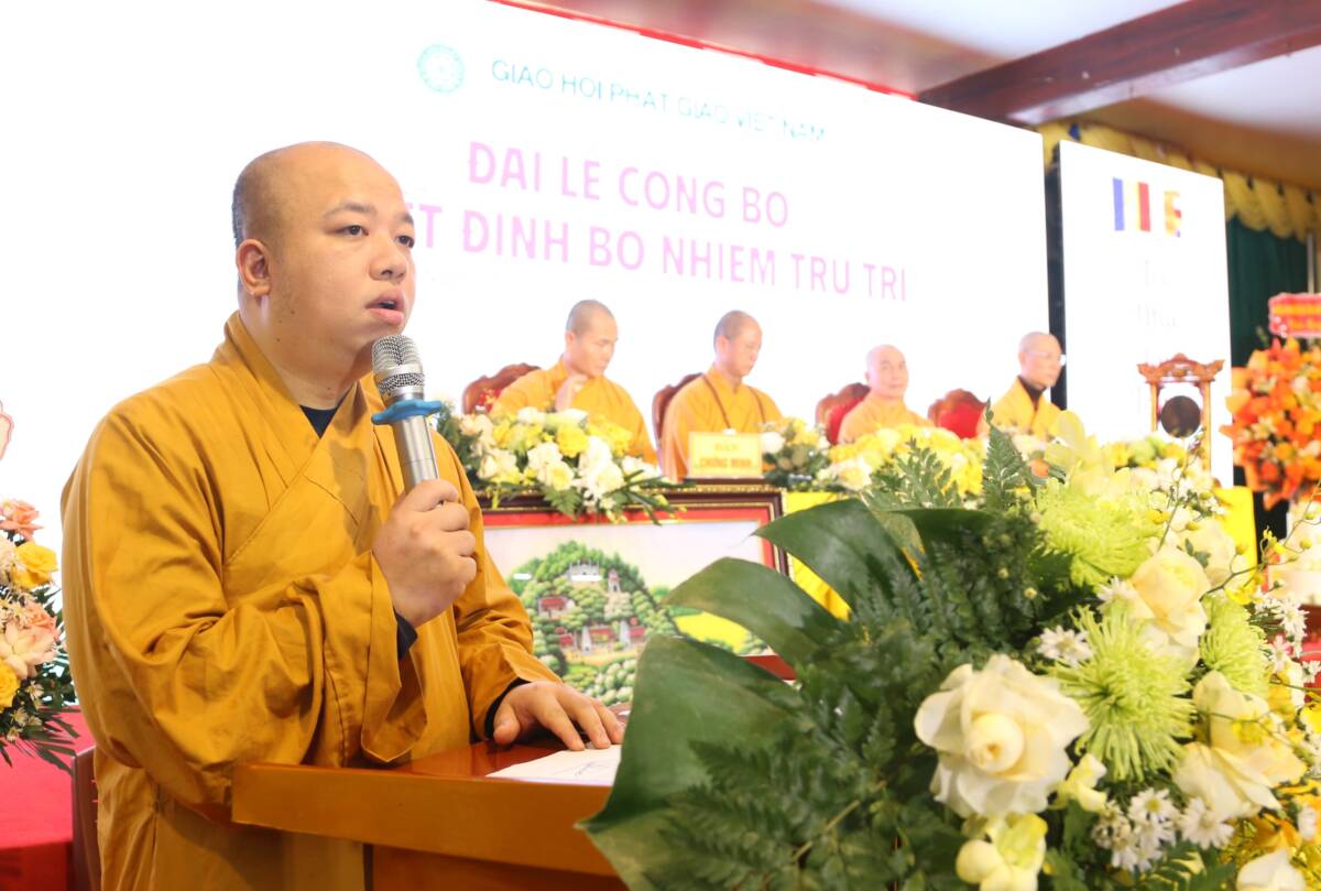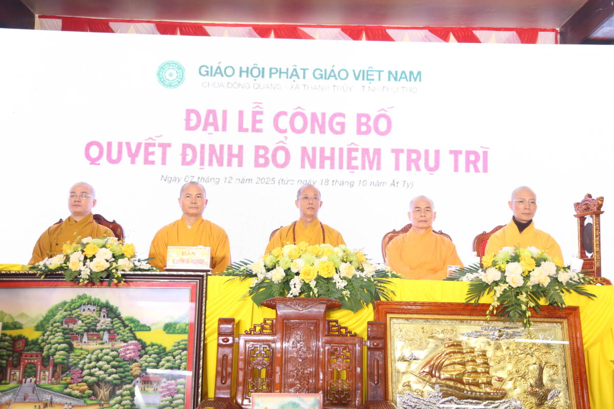 Tiếp đó, Đại đức Thích Đạo Tế – Phó Văn phòng BTS GHPGVN tỉnh Phú Thọ công bố Quyết định bổ nhiệm trụ trì chùa Đông Quang và Thượng tọa Thích Minh Nghiêm đã trao Quyết định bổ nhiệm trụ trì đến Đại đức Thích Đạo Minh.