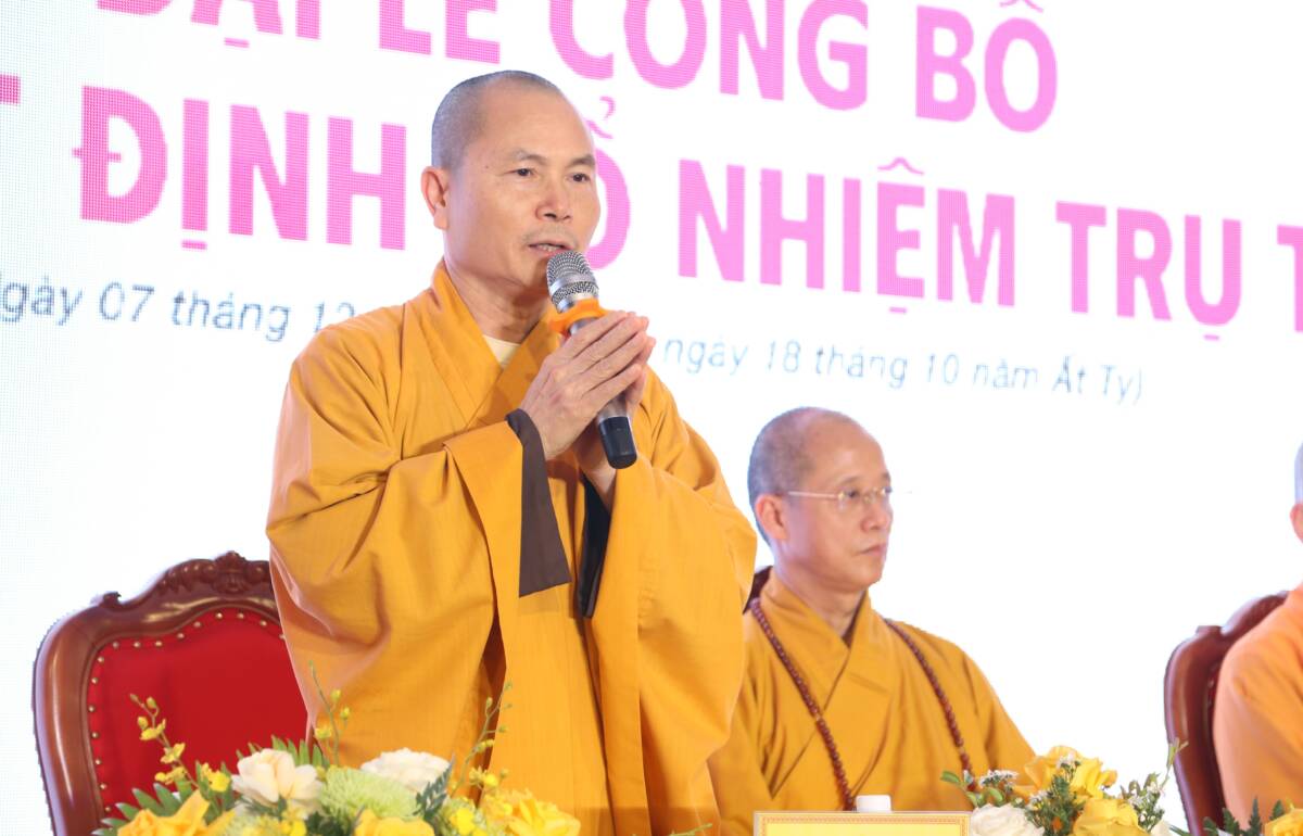 Trong không khí trang nghiêm, Thượng tọa Thích Minh Nghiêm ban đạo từ nhấn mạnh, trụ trì là người ‘trụ pháp vương gia, trì Như Lai tạng’. Gánh việc chùa không chỉ là duy trì lễ nghi, mà còn là mang ánh sáng Từ bi soi rọi vào đời sống. Thượng toạ mong Thầy Đạo Minh giữ trọn chí nguyện ban đầu, lấy giới luật làm thầy, lấy chúng sinh làm phụng sự. Mong chính quyền và nhân dân Phật tử cùng đồng lòng chung sức để ngôi chùa Đông Quang ngày càng hưng thịnh.