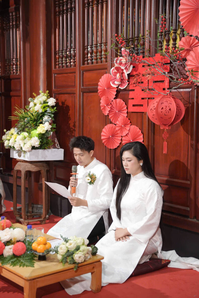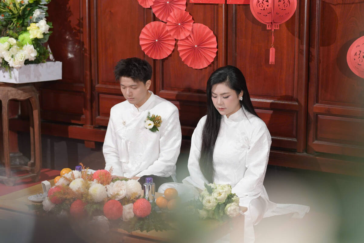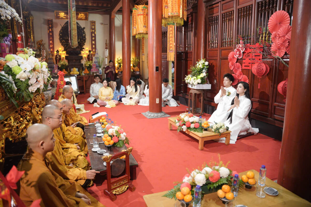 Cuối buổi lễ, Đại đức trụ trì cùng chư tôn đức chứng minh và toàn thể đại chúng đã làm lễ chúc phúc cho đôi bạn trẻ “Trăm năm tình viên mãn, bạc đầu nghĩa phu thê”.