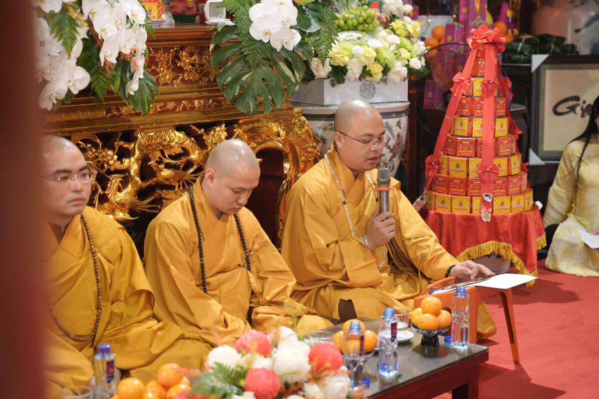 Buổi lễ được diễn ra trang nghiêm trong sự gia hộ của mười phương chư Phật, sự chứng minh của ĐĐ trụ trì Thích Nhuận Đức; ĐĐ. Thích Giác Hợp; ĐĐ. Thích Thanh Tuyền; ĐĐ. Thích Viên Minh cùng sự tham dự của họ hàng hai bên gia đình của đôi bạn trẻ.