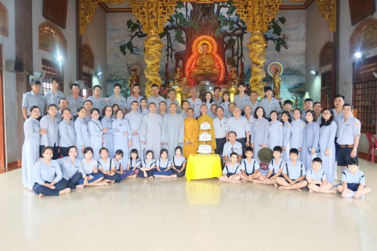 Bài hát “Về mừng chu niên” vang lên Gia đình Phật tử Bảo Lâm đã cung thỉnh Đại đức Cố vấn giáo hạnh đốt nến mừng chu niên lần thứ 34 của Gia đình.