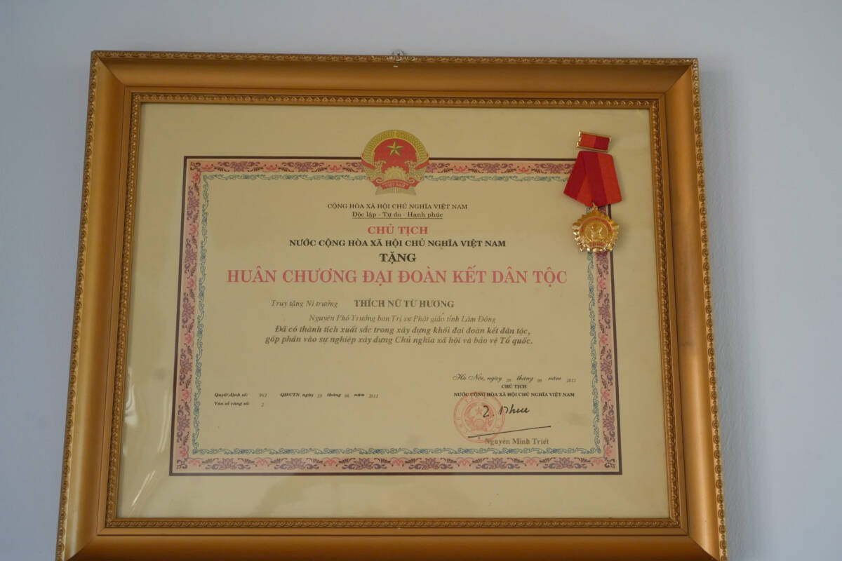 Sau nhiều thập niên gắn bó với Lâm Đồng, năm 2006, Sư trưởng Thích Nữ Từ Hương thuận thế vô thường, viên tịch ở tuổi 90 với 70 mùa an cư.