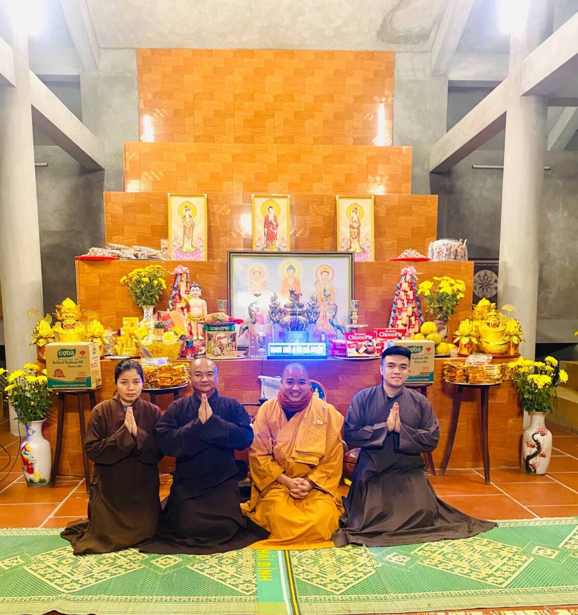 Bùi Huy Hoàng (áo đen, ngoài cùng, bên phải) trong một lần đến chùa lễ Phật. Ảnh: NVCC