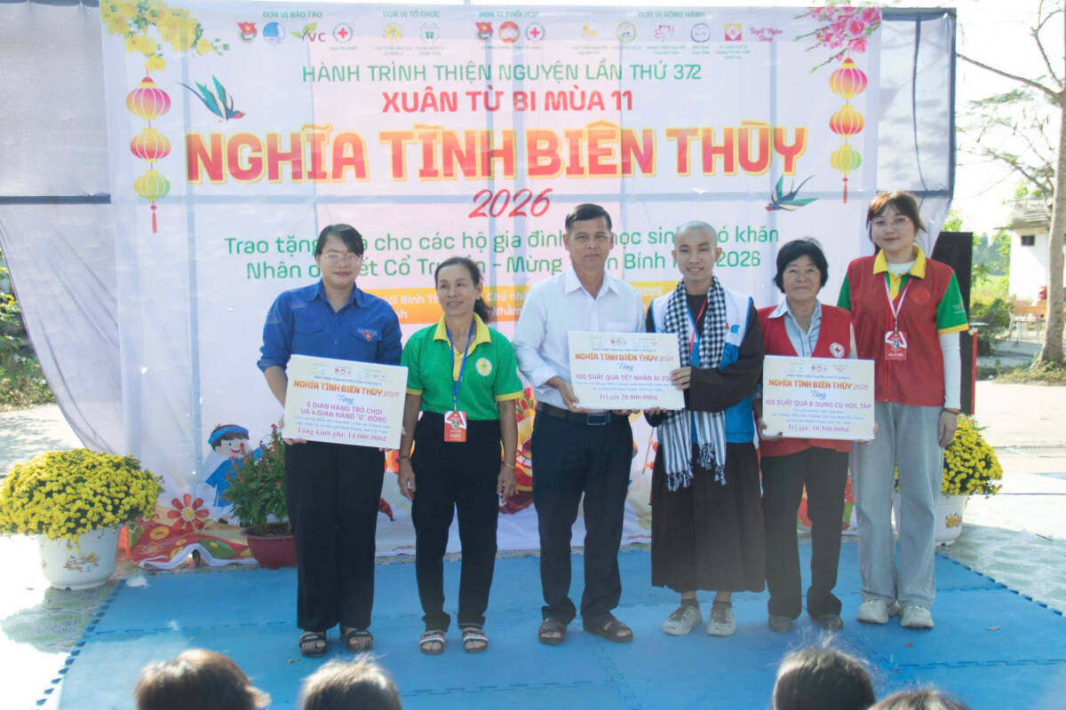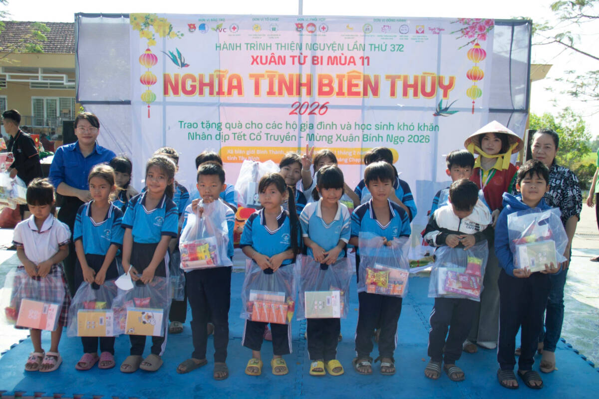 PGĐS – Sáng ngày 01/02/2026 (nhằm ngày 14 tháng Chạp năm Ất Tỵ), Câu lạc bộ Thiện nguyện Cỏ Bốn Lá (thành viên Mạng lưới Tình nguyện Quốc gia khu vực miền Nam thuộc Trung tâm Tình nguyện Quốc gia – TW Đoàn TNCS HCM) phối hợp UB MTTQ Việt Nam xã Bình Thành, Đoàn TNCS HCM xã Bình Thành và BCH Hội Chữ Thập Đỏ xã Bình Thành (tỉnh Tây Ninh) tổ chức chuỗi hoạt động xuân từ bi mùa 11, với chủ đề “Nghĩa Tình Biên Thùy” 2026 tại xã biên giới Bình Thành, tỉnh Tây Ninh.