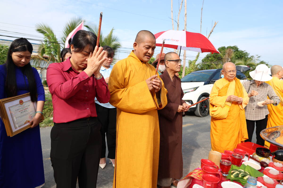 Quang lâm chứng minh và tham dự buổi lễ có Đại đức Thích Lệ Duyên – Phó Trưởng ban, Chánh Thư ký Ban Trị sự GHPGVN tỉnh Tây Ninh; Ni sư Thích Nữ Ánh Liên – Phó Trưởng ban Từ thiện xã hội Phật giáo tỉnh; bà Vũ Hồng Hạnh – Bí thư Đảng ủy, Chủ tịch HĐND xã Hòa Khánh, cùng đại diện các ban ngành địa phương, chư Tôn đức Tăng Ni và đông đảo bà con nhân dân sở tại.