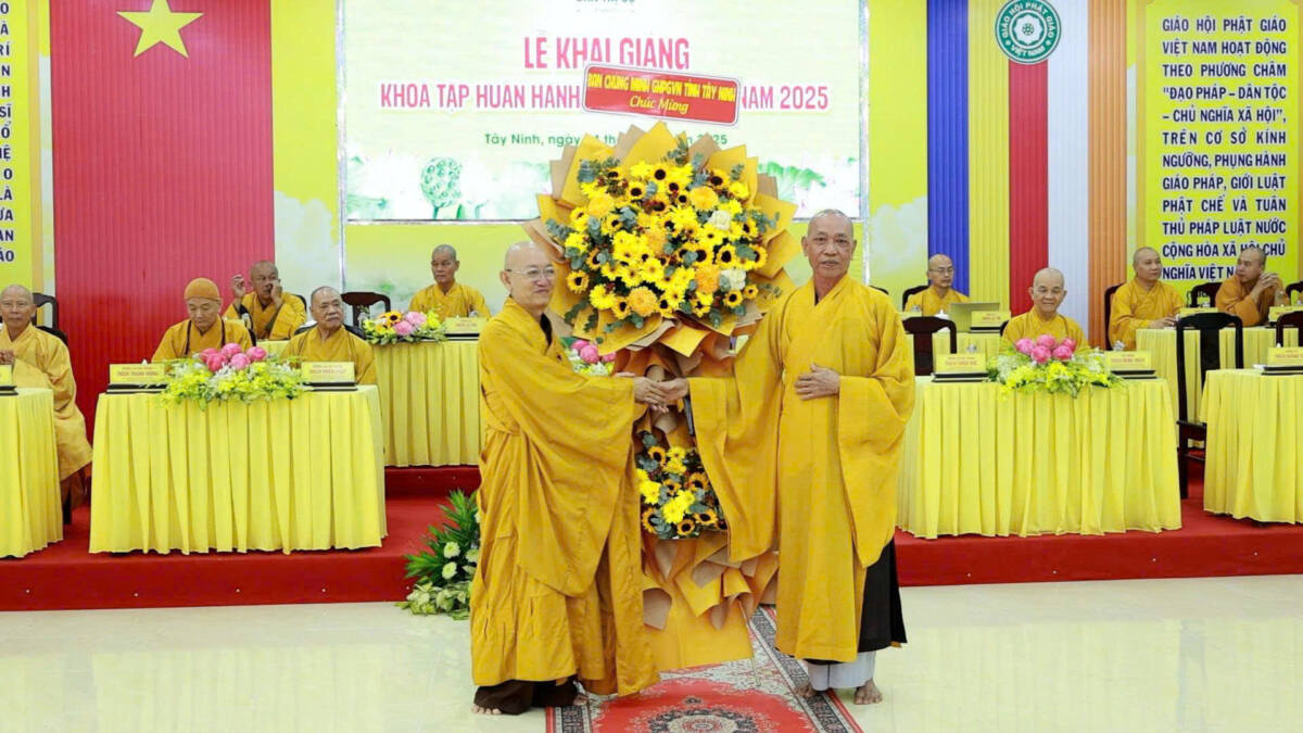 Phát biểu tại buổi lễ, ông Nguyễn Văn Mưng – Phó Giám đốc Sở Dân tộc – Tôn giáo tỉnh đã chia sẻ về những thuận lợi trong công tác dân tộc, tôn giáo tại Tây Ninh. Ông đánh giá cao những nỗ lực và thành quả của Phật giáo tỉnh nhà trong thời gian qua, khẳng định ý nghĩa thiết thực của Khóa tập huấn năm nay trong việc nâng cao năng lực quản lý, điều hành Phật sự tại địa phương, và bày tỏ mong muốn Chư Tôn đức tiếp tục thực hiện tốt các quy định của Luật Tín ngưỡng, Tôn giáo, góp phần xây dựng tỉnh nhà ngày càng phát triển.