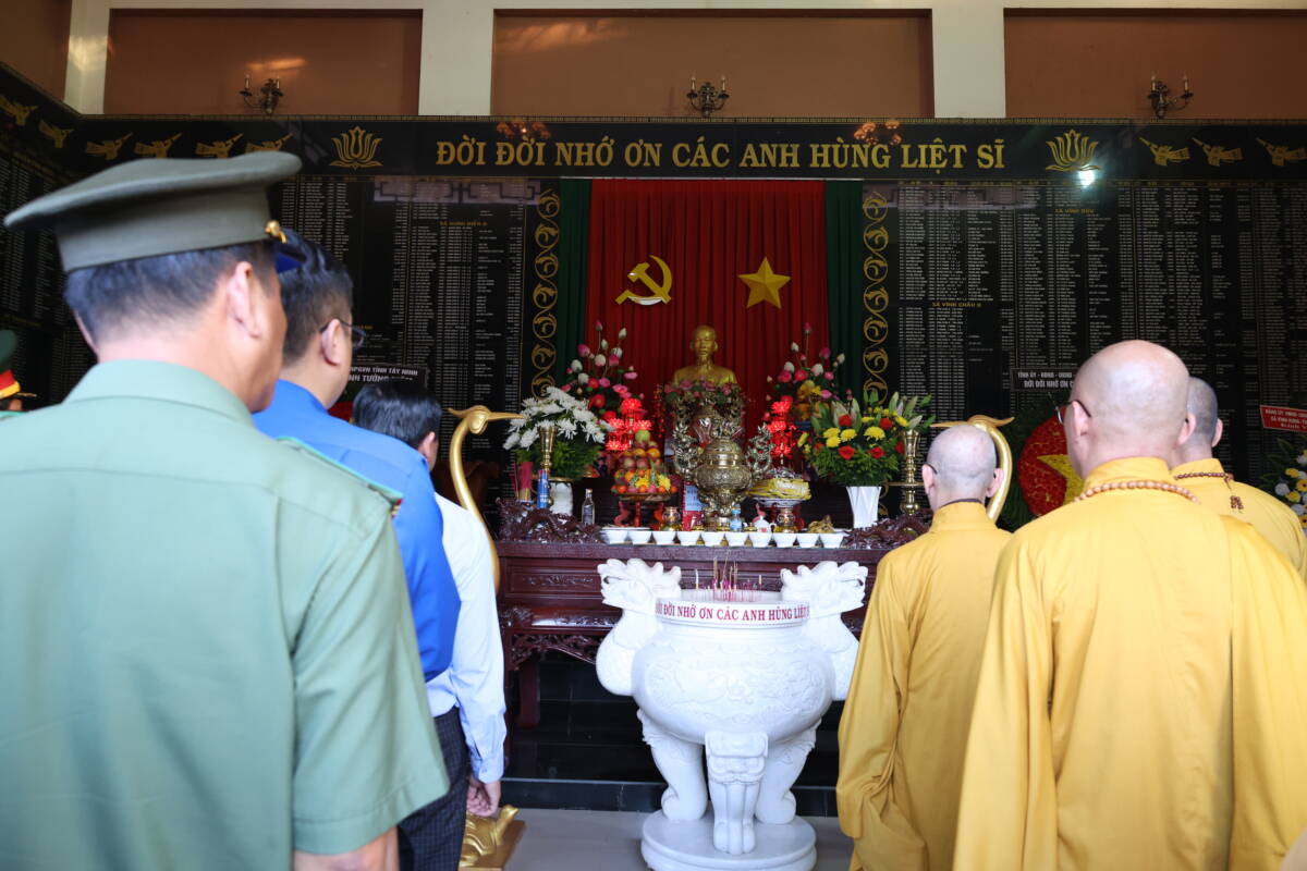 Buổi lễ diễn ra trong không khí trang nghiêm, thanh tịnh, với sự tham dự của đại diện lãnh đạo tỉnh Tây Ninh, chư Tôn đức Tăng Ni Ban Trị sự GHPGVN tỉnh, các ban ngành, đoàn thể, thân nhân liệt sĩ và đông đảo người dân địa phương.