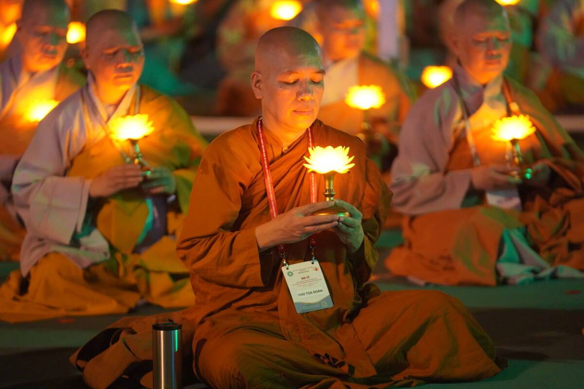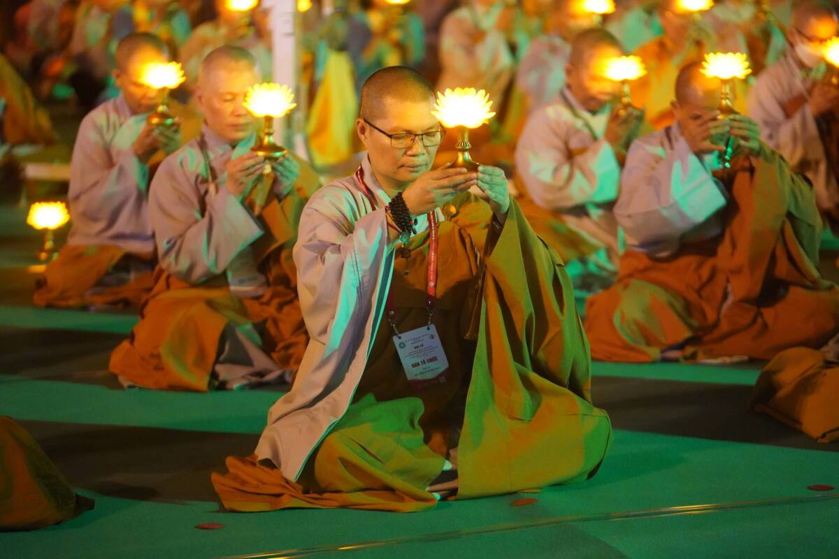 Sau khi Pháp hội cùng vận tâm thành kính dâng nén tâm hương lễ Phật lễ Tổ, toàn thể đại chúng cùng thắp ngọn nhiên đăng thành kính cúng dường.