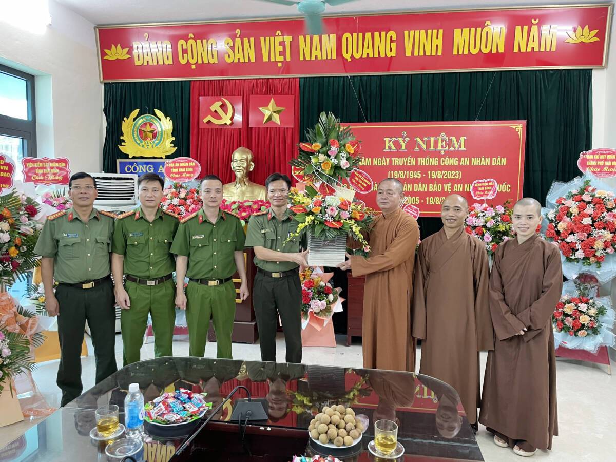PGĐS – Sáng 18-8, lãnh đạo Ban Thường trực Ban Trị sự GHPGVN tỉnh Thái Bình đến thăm, chúc mừng Công an tỉnh nhân kỷ niệm 78 năm ngày truyền thống Công an nhân dân (19-8-1945 – 19-8-2023).