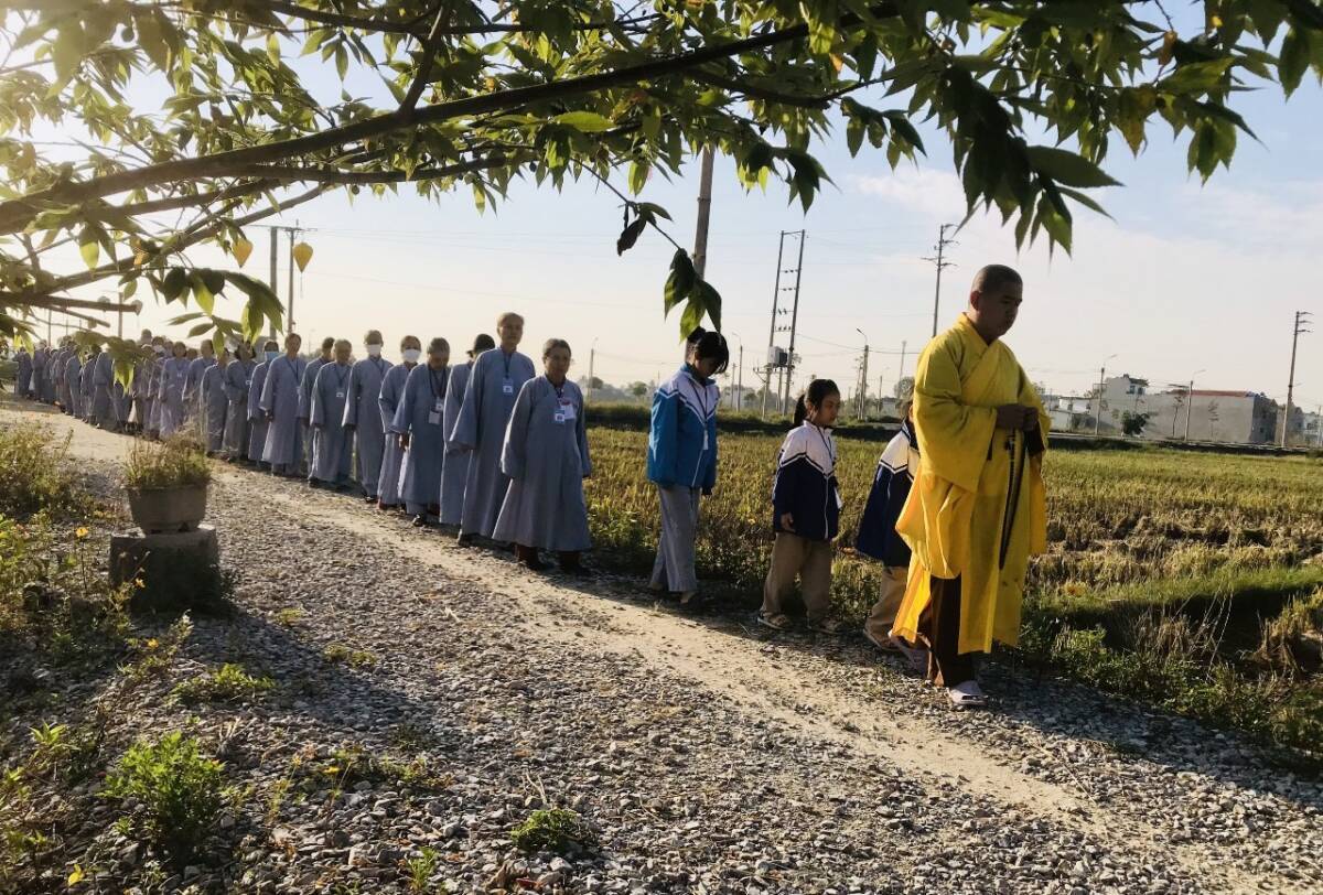 Mở đầu khóa tu, Đại Đức Thích Tâm Hưng – Trụ trì chùa Đống Cao đã hướng dẫn đại chúng Thiền hành ngắm bình mình nơi thôn quê. Tiếp đó, Phật tử Diệu Thăng hướng dẫn đại chúng bước vào thời khóa sám hối Sáu Căn và Đại Đức Trụ trì hướng dẫn đại chúng ôn lại Tam quy, Ngũ giới cùng thực hiện nghi thức phóng sinh để lan tỏa yêu thương tới muôn loài.