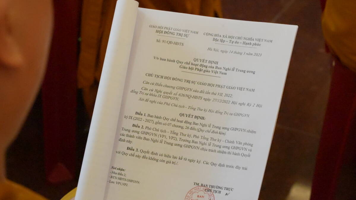 Hòa thượng Thích Thiện Thống thay mặt Trung ương GH đã ban lời Đạo từ tán thán công đức ban Nghi lễ T.Ư và ban Nghi lễ các tỉnh, thành phố. Hòa thượng đánh giá việc công bố dự thảo giáo trình Nghi lễ các cấp, đây là lần đầu tiên, một bộ giáo trình về nghi lễ được thực hiện nhằm làm cơ sở truyền dạy nghi lễ cho Tăng Ni cả nước, góp phần bảo tồn một phần quan trọng trong văn hóa Phật giáo Việt Nam. Những nghi lễ tâm linh thực sự làm ấm lòng và đã xoa dịu đi phần nào những mất mát mà người dân phải chịu trong cơn đại dịch vừa qua.