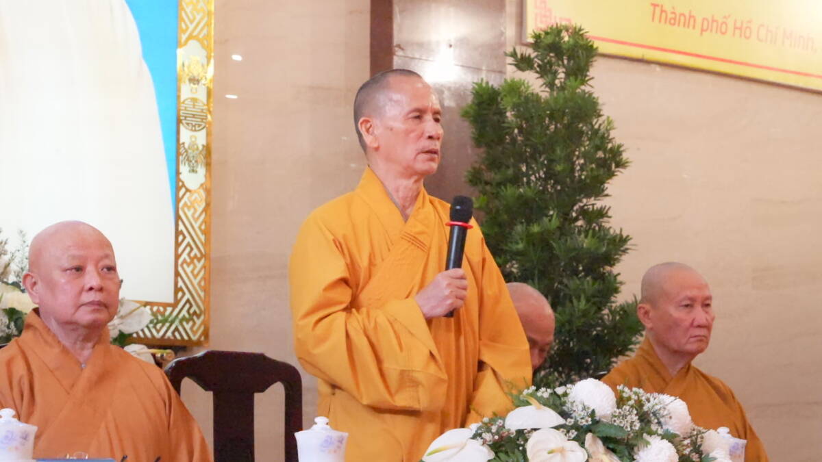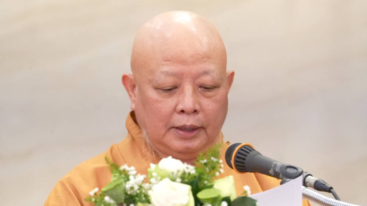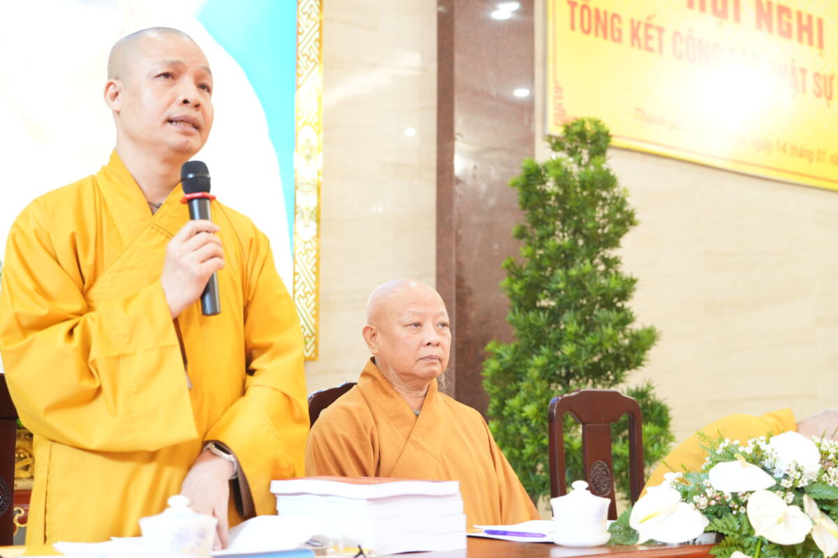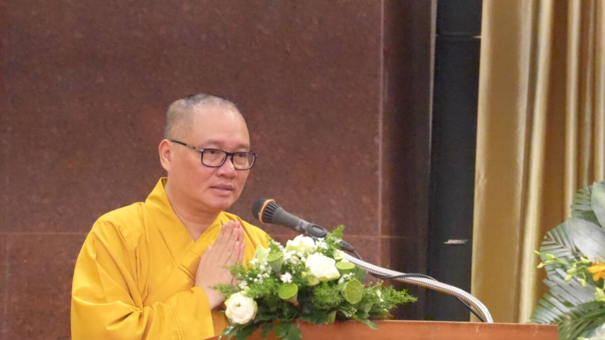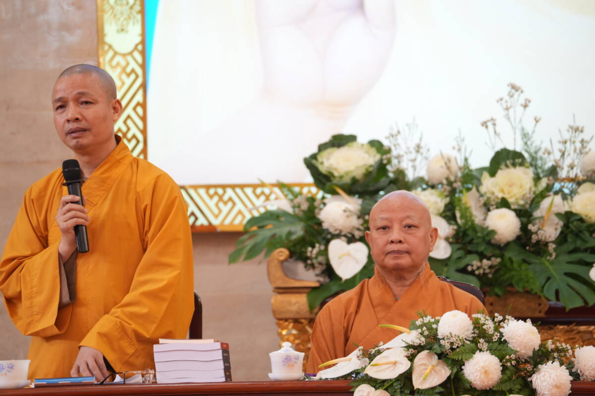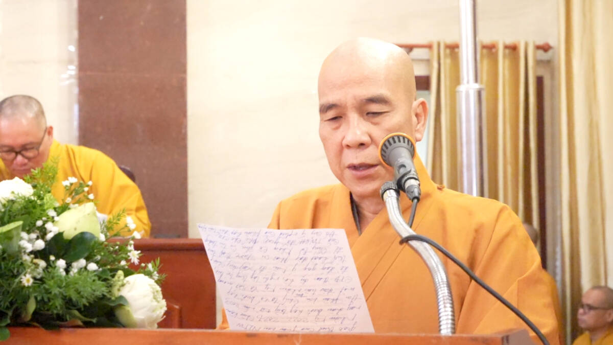 Ảnh: Thượng tọa Thích Thanh Lợi, đã Báo cáo tổng kết công tác Phật sự