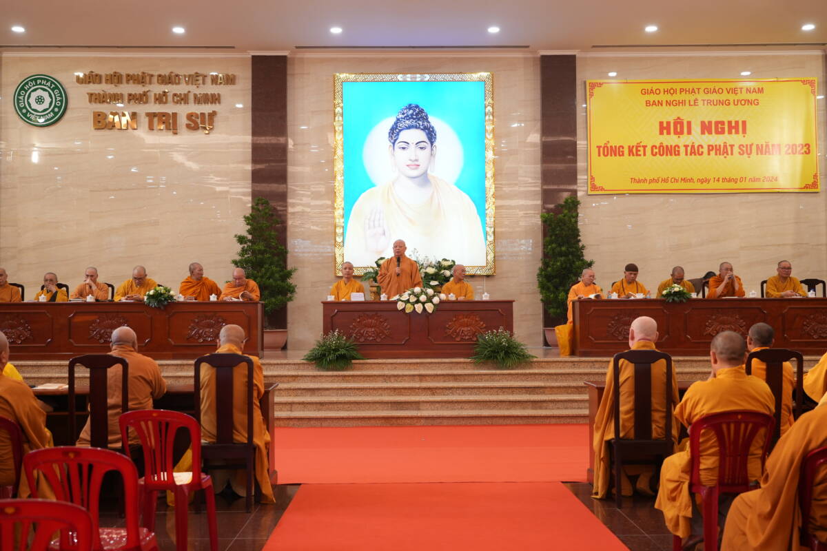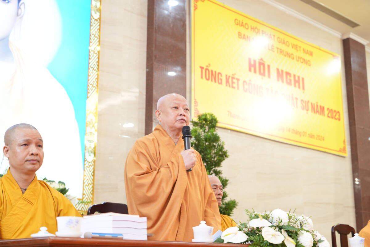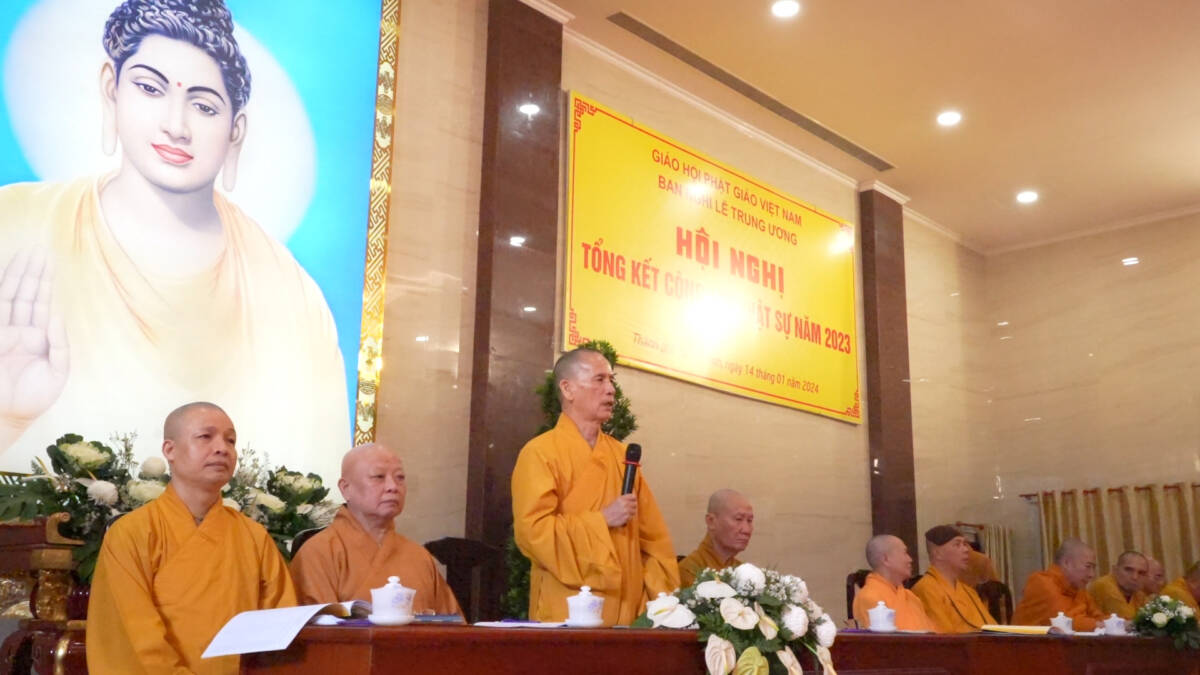Thượng tọa Thích Thanh Lợi, đã báo cáo tổng kết công tác Phật sự ban Nghi lễ T.Ư gồm 4 chương, khái quát những hoạt động và thành tựu mà Ban đã thực hiện trong năm 2023, cũng là năm đầu tiên của Đại hội IX nhiệm kỳ (2022-2027). Theo đó, trong năm vừa qua ban Nghi lễ T.Ư đã hoàn tất được những Phật sự quan trọng như: hoàn thiện cơ cấu nhân sự của nhiệm kỳ IX; tham gia các công tác Phật sự của TƯGH, các Đại lễ như Phật đản, Vu lan, Cầu siêu cho chư hương linh, đồng bào tử nạn do đại dịch Covid-19 vừa qua, tổ chức lễ tưởng niệm Bồ-tát Thích Quảng Đức và chư Thánh tử đạo, lễ tưởng niệm Phật hoàng Trần Nhân Tông;… Đồng thời, triển khai định hướng công tác của ban Nghi lễ T.Ư trong năm 2024.