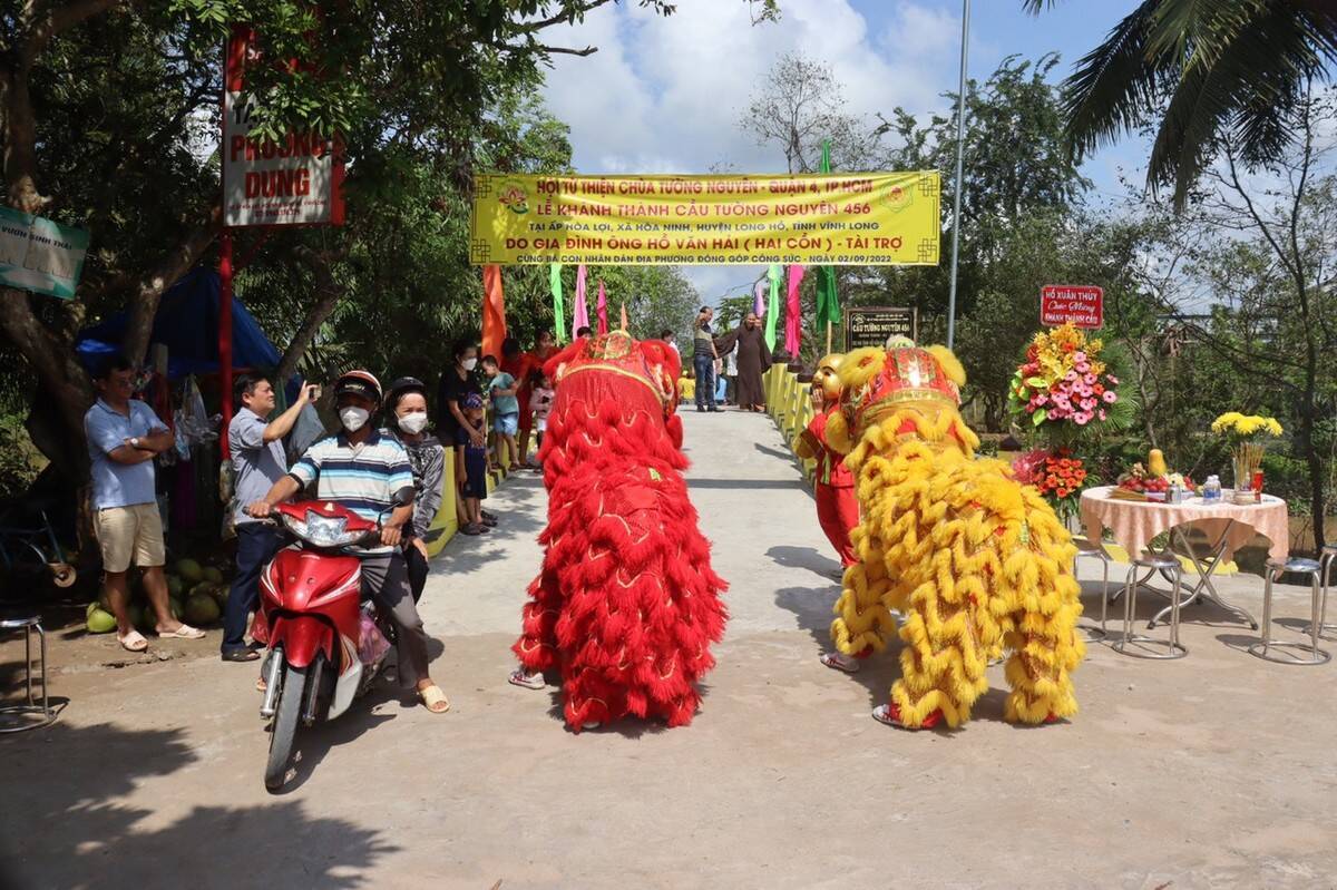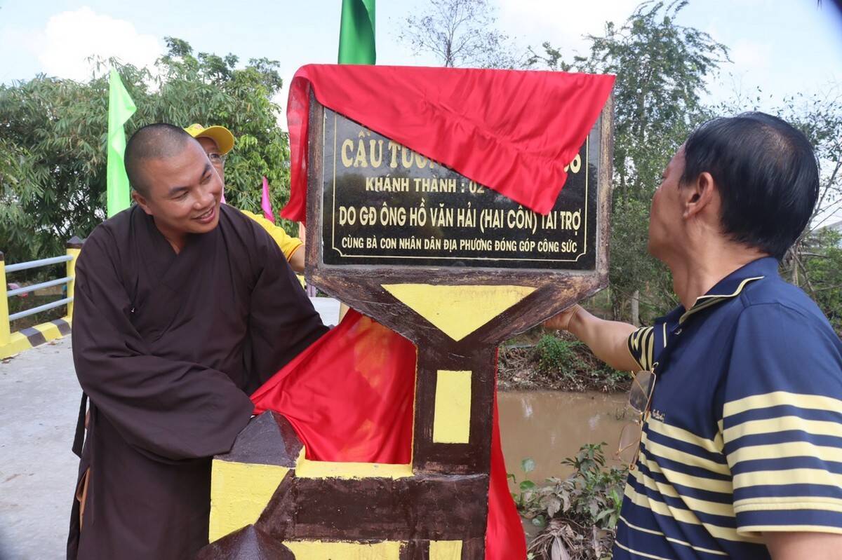 PGĐS – Ngày 2/9/2022 ( 7/8 Nhâm Dần), Hội Từ Thiện Tường Nguyên do TT. Thích Minh Phú cùng Ông Hồ Văn Hải ( Hai Cồn ) tổ chức khánh thành thông xe cầu nông thôn Tường Nguyên thứ 456 dài 24m, ngang 3,5m, tải trọng 3 tấn ở xã Hòa Ninh hoàn thành trong vòng 14 ngày và TT.Thích Pháp Hòa Trụ trì chùa Trúc Lâm Tây Thiên tại Canada cùng phật tử hải ngoại thông xe cầu nông thôn Tường Nguyên thứ 443 dài 3.3m, ngang 45m, tải trọng 3 tấn ở xã Tân Hòa Tây, hoàn thành trong vòng 12 ngày.