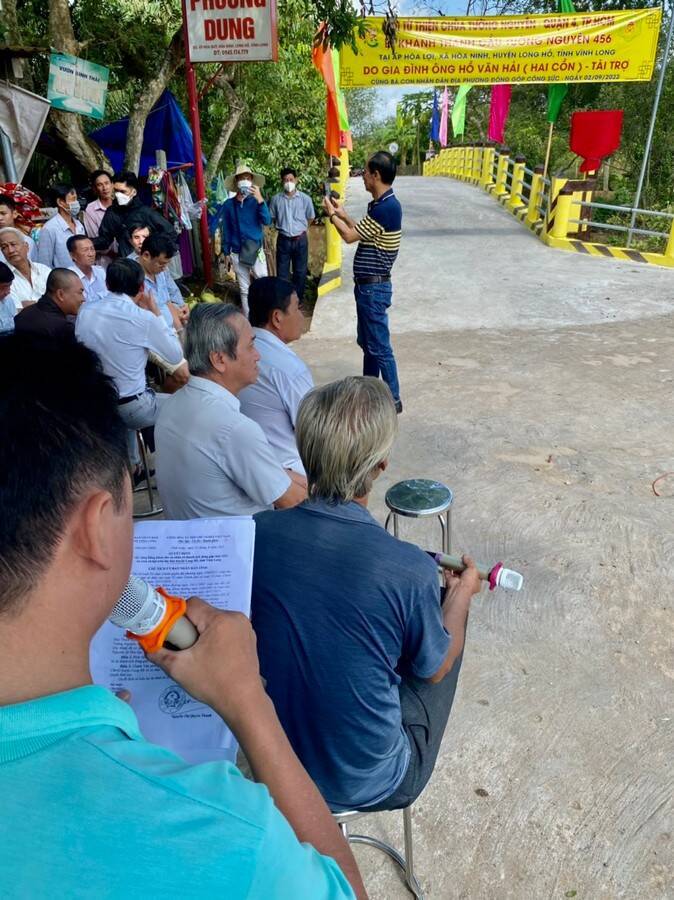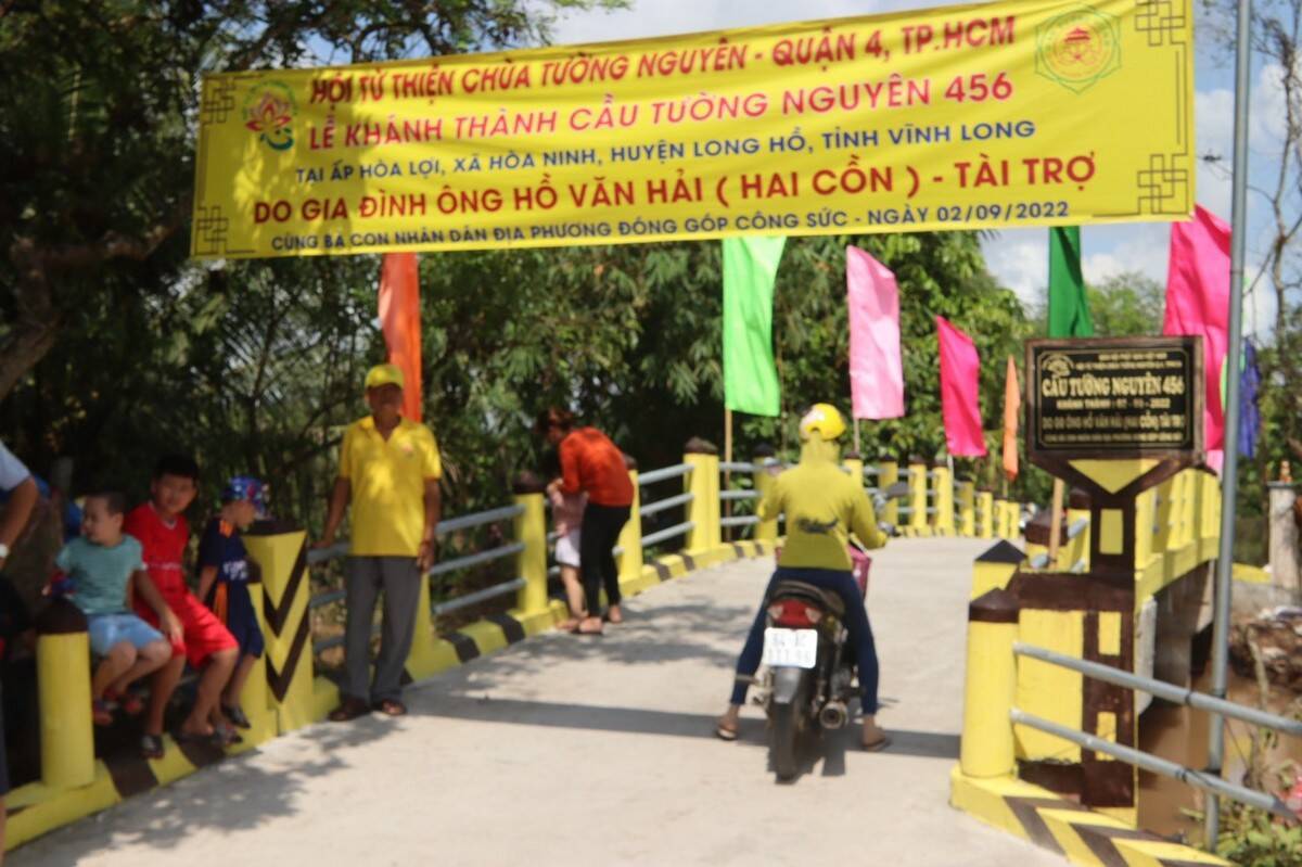 Ông Hồ văn Hải, chủ đầu tư xây cầu Tường Nguyên thứ 456 cho biết, hàng chục năm nay luôn quan tâm đến công tác xã hội, góp phần cùng xây dựng quê hương ngày càng phát triển. Lần này đồng hành cùng Hội Từ Thiện Tường Nguyên Q4 xây dựng cầu Tường Nguyên thứ 456 tại Vĩnh Long và 443 tại Tiền Giang nhằm tạo điều kiện cho người dân đi lại, vận chuyển hàng hóa thuận lợi; góp phần phát triển kinh tế, nâng cao đời sống vật chất, tinh thần của người dân.