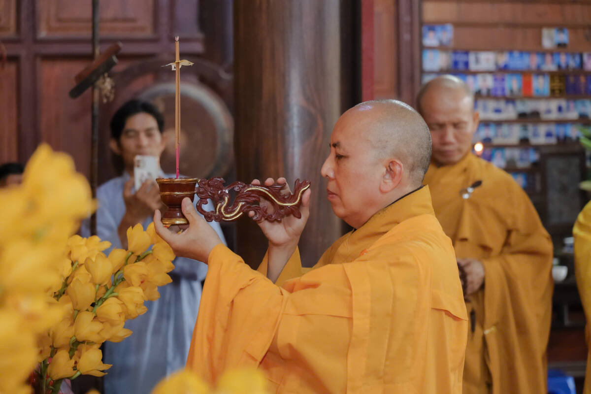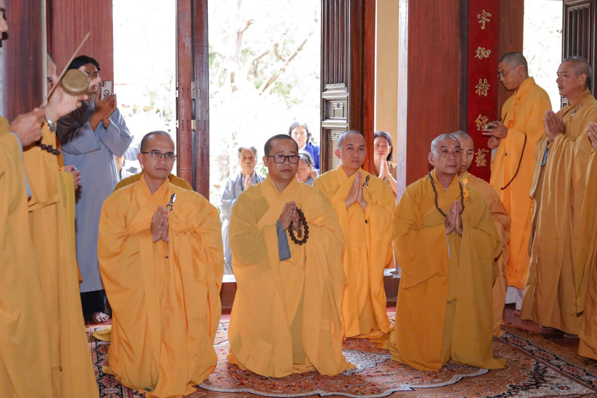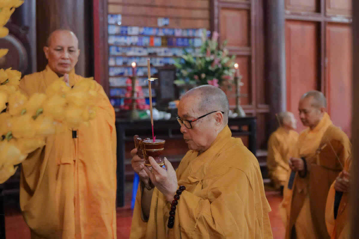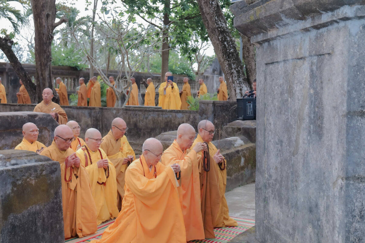 Chư Tôn thiền đức Tăng Ni cùng môn đồ tứ chúng đồng vân tập nơi bảo tháp, nhất tâm đảnh lễ, xưng tán công hạnh, tưởng niệm ân đức cao dày của bậc long tượng Phật pháp đã một đời tận tụy vì Đạo pháp và Dân tộc.