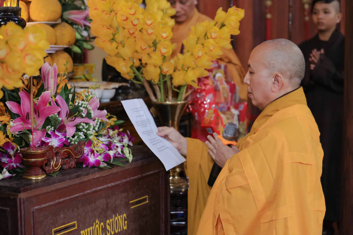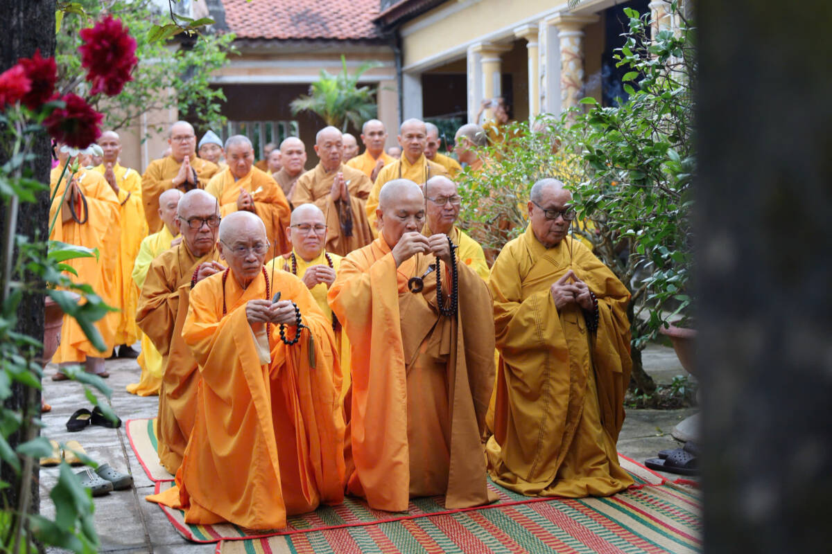 Chư Tôn thiền đức Tăng Ni cùng môn đồ tứ chúng đồng vân tập nơi bảo tháp, nhất tâm đảnh lễ, xưng tán công hạnh, tưởng niệm ân đức cao dày của bậc long tượng Phật pháp đã một đời tận tụy vì Đạo pháp và Dân tộc.