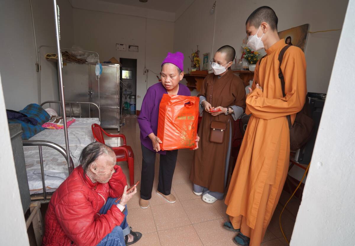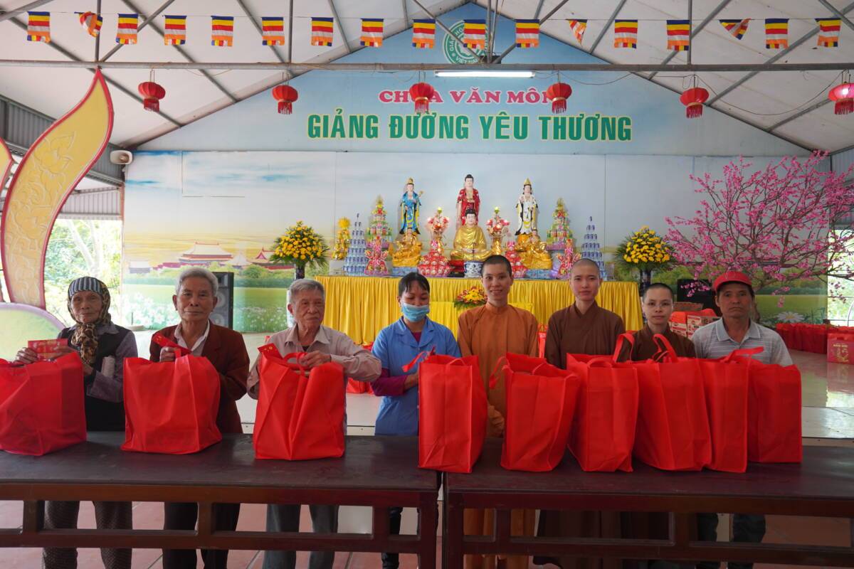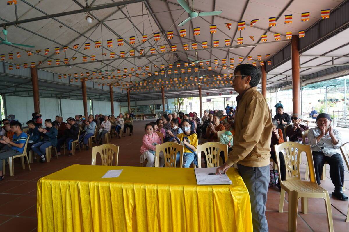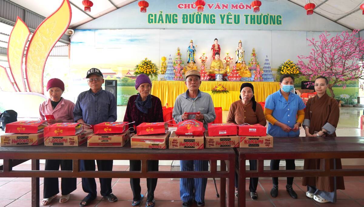 Tham dự buổi trao quà đại diện đoàn thiện nguyện có sự tham gia của sư cô “ Thích Diệu Thuần – Phó tổng biên tập – báo Phật Giáo Đời Sống, sư cô Thích Nữ Liên Điều ,sư cô Thích Diệu Thư cùng các Phật tử chùa Bảo Quang thôn Trung sơn xã Ngũ Lão huyện Thủy Nguyên thành phố Hải Phòng, các bạn nhỏ Mầm Xanh, các PV- BTV, đã đồng hành cùng hành trình thiện nguyện tại bệnh viện đa khoa da liễu Vân Phong – Vũ Thư – Thái Bình .