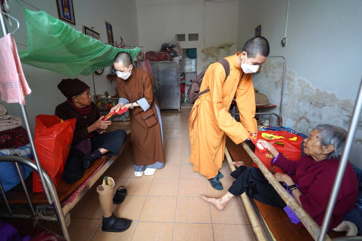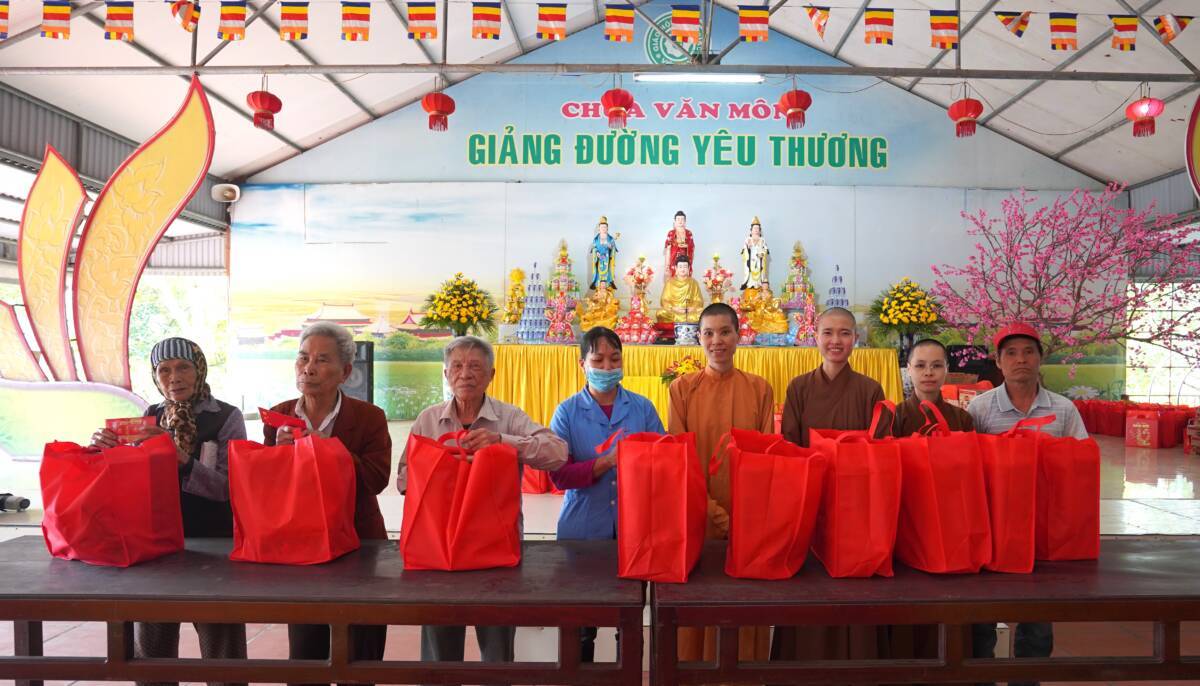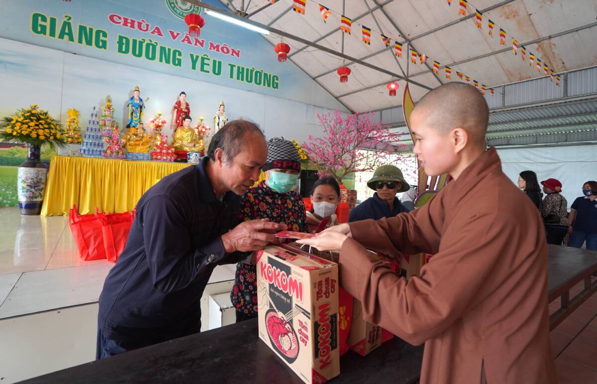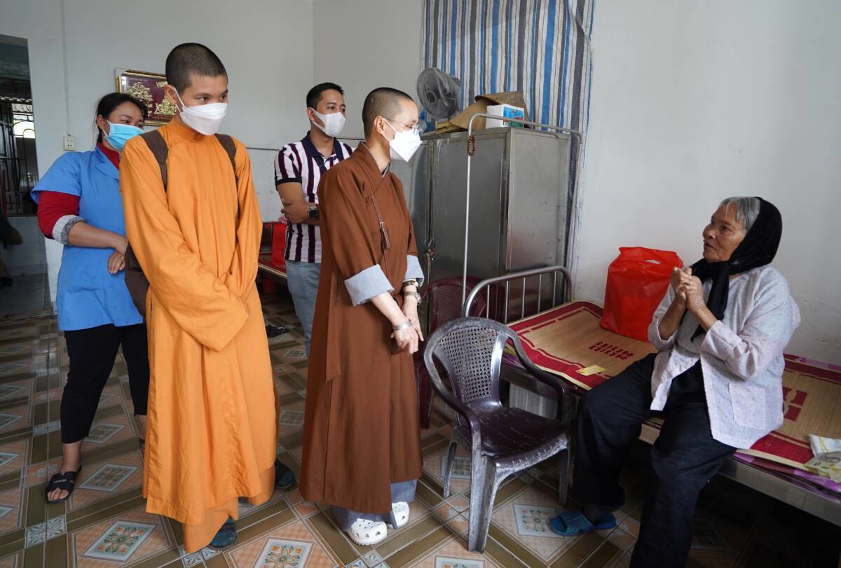 Tham dự buổi trao quà đại diện đoàn thiện nguyện có sự tham gia của sư cô “ Thích Diệu Thuần – Phó tổng biên tập – báo Phật Giáo Đời Sống, sư cô Thích Nữ Liên Điều ,sư cô Thích Diệu Thư cùng các Phật tử chùa Bảo Quang thôn Trung sơn xã Ngũ Lão huyện Thủy Nguyên thành phố Hải Phòng, các bạn nhỏ Mầm Xanh, các PV- BTV, đã đồng hành cùng hành trình thiện nguyện tại bệnh viện đa khoa da liễu Vân Phong – Vũ Thư – Thái Bình .