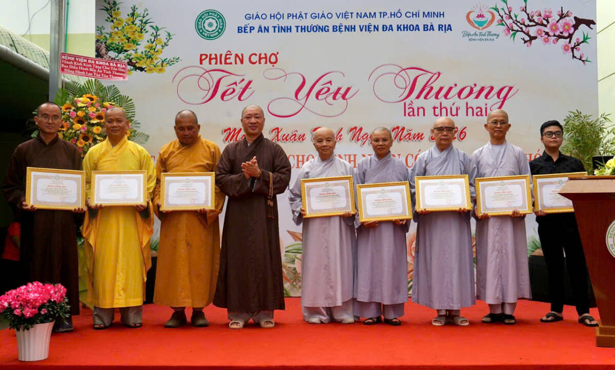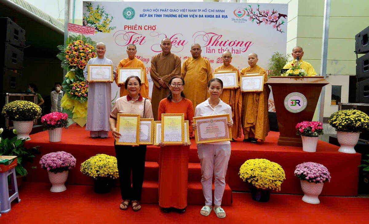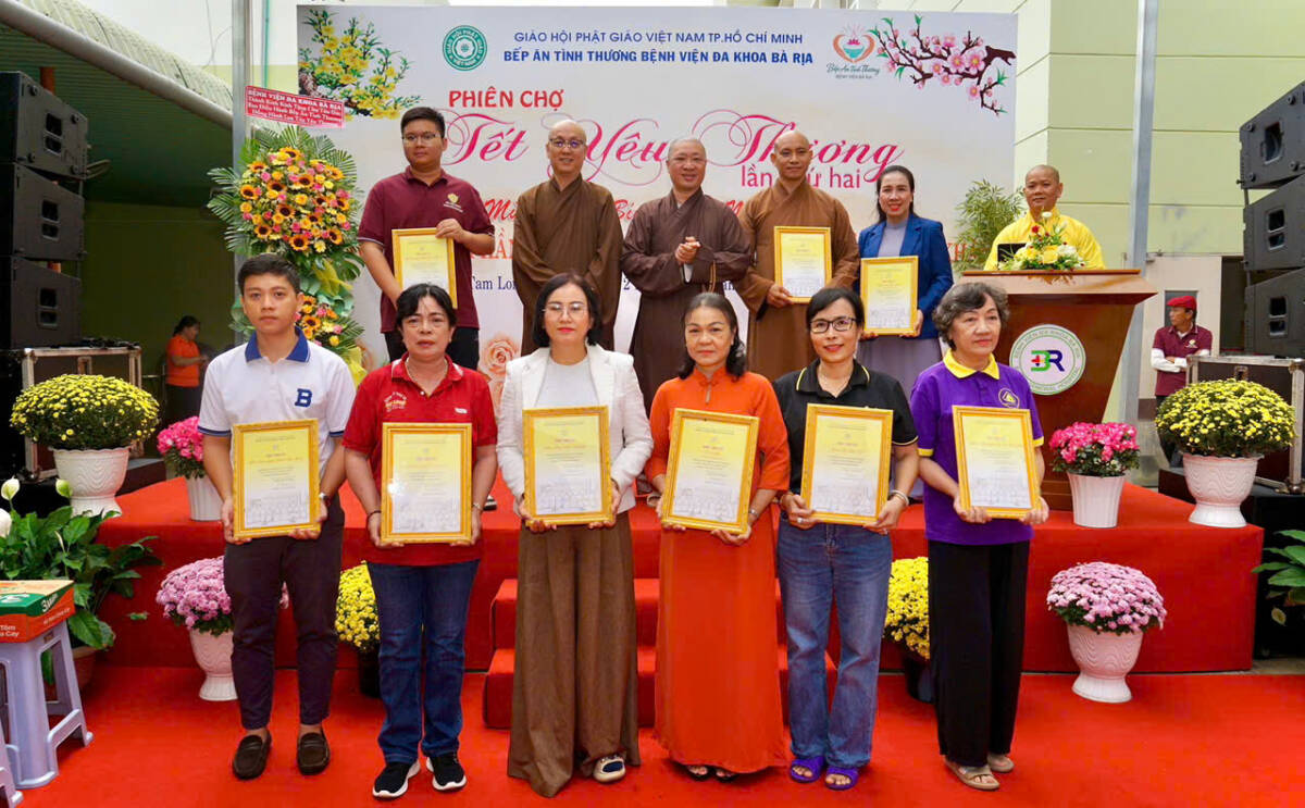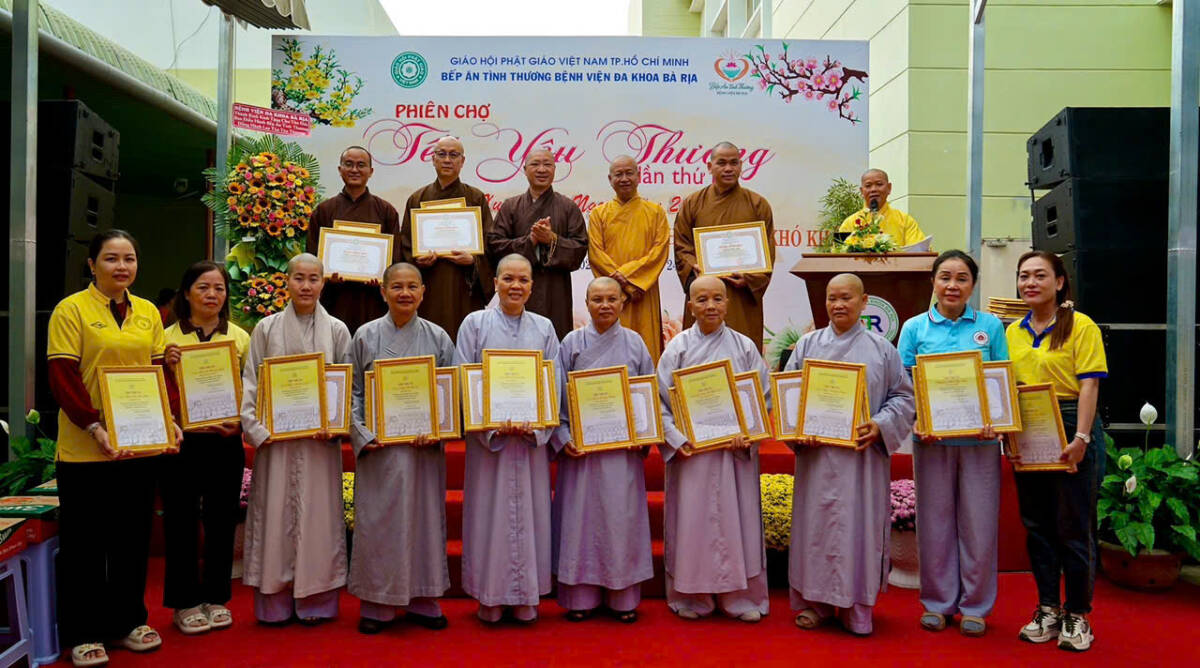 Trong khuôn khổ buổi lễ, Bếp ăn tình thương vinh dự được Ban Trị sự Phật giáo TP.HCM trao tặng Bằng tuyên dương công đức, ghi nhận những đóng góp bền bỉ và đầy tâm huyết trong hành trình phụng sự cộng đồng. Đồng thời, Ban Tổ chức Phiên chợ cũng trao tâm thư cho các đơn vị tài trợ như một sự tri ân sâu sắc.