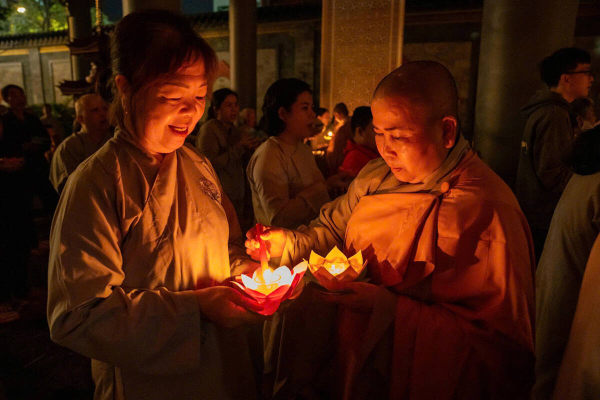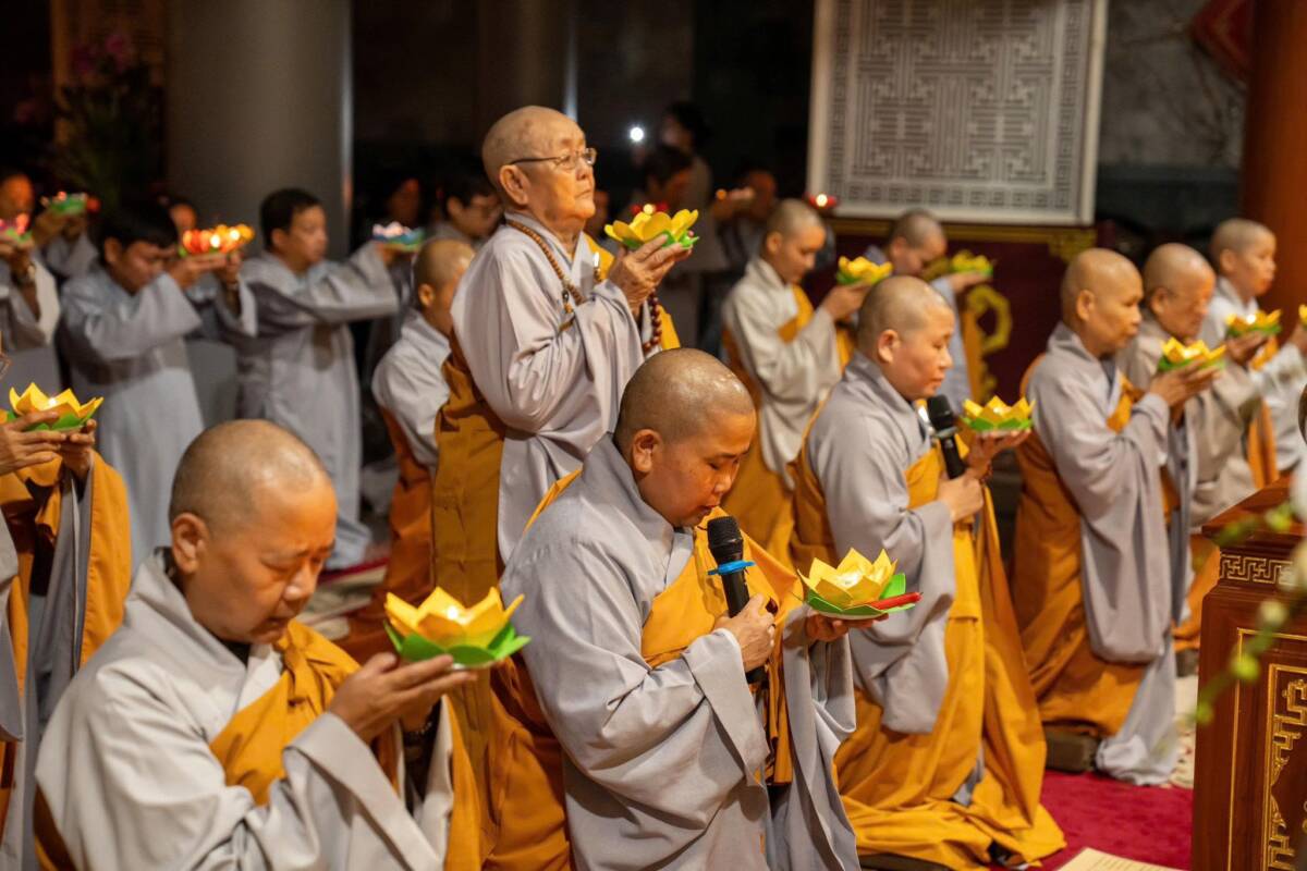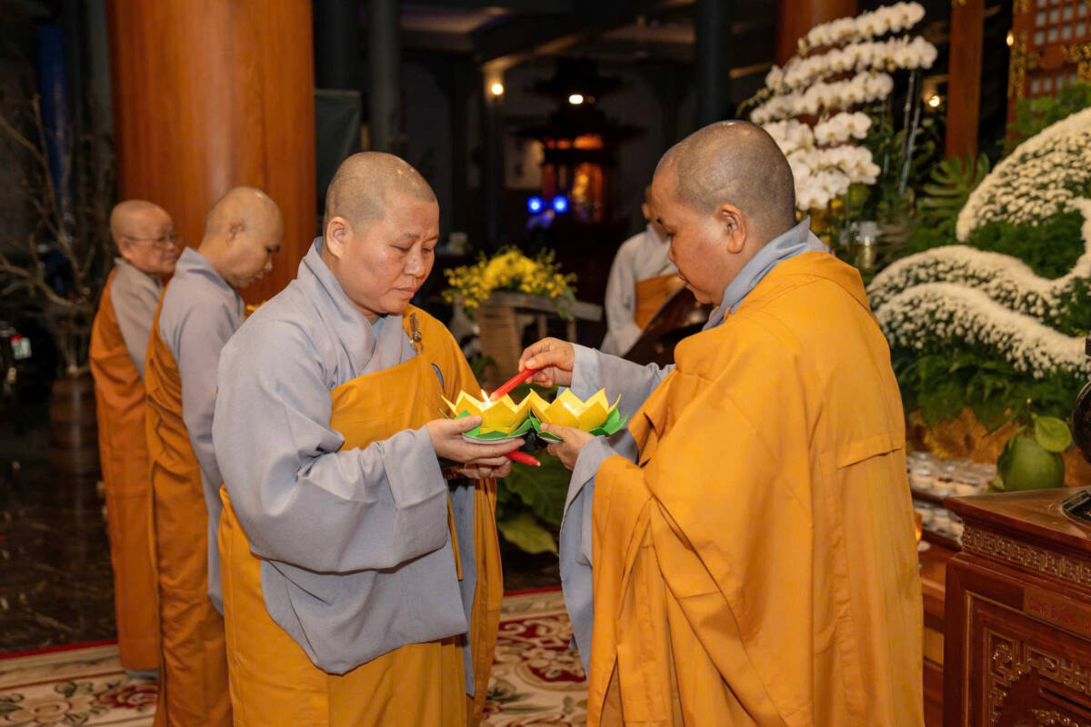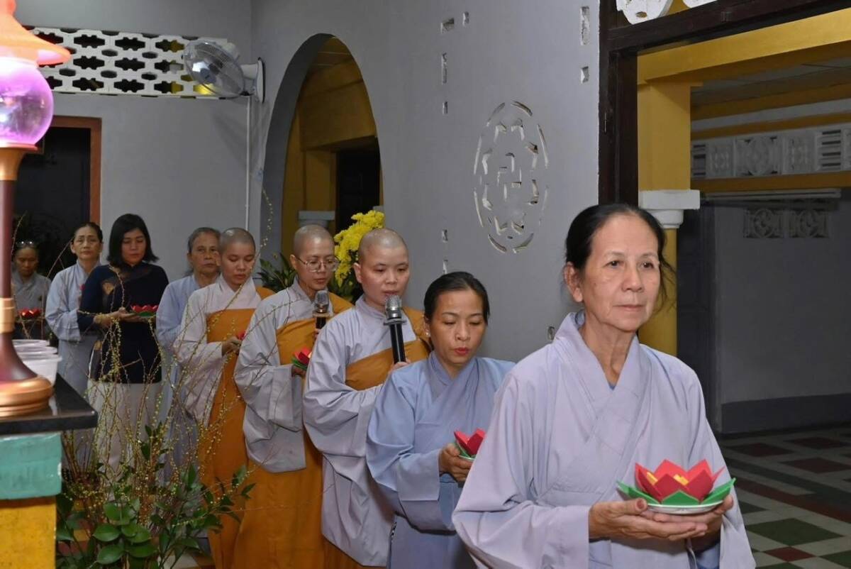 Tối ngày 17-11-Ất Tỵ, tại chùa Vạn Phước, Ni sư Thích nữ Nguyên Xuân hướng dẫn đại chúng dâng lời nguyện lành lên đức Phật Di Đà. Mỗi ngọn đèn như nhắc nhở mỗi người con Phật quay về soi rọi tự tâm, sống đời tỉnh thức và yêu thương.