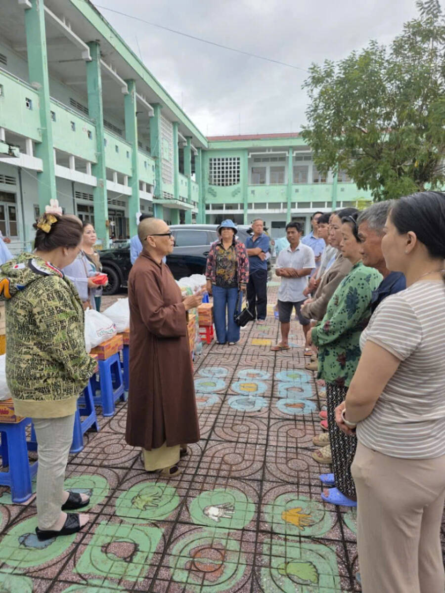 Đoàn đã được đại diện địa phương hướng dẫn đến thực địa và thăm các hộ gia đình. Ni sư Trưởng đoàn đã ân cần thăm hỏi, động viên người dân tuân thủ hướng dẫn của chánh quyền để đảm bảo an toàn trong mùa mưa lũ và sớm vượt qua khó khăn để ổn định cuộc sống.