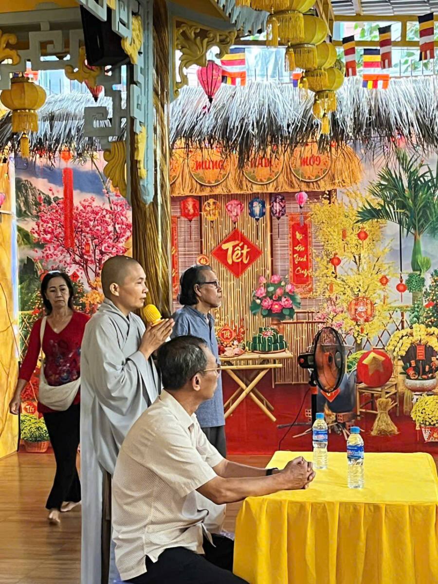 Thay mặt Bổn tự, Sư cô Thích Nữ Như Hướng chia sẻ ý nghĩa Thành Đạo của Đức Từ Phụ và chúc mừng quý Phật tử đã hoàn thành một năm tu tập với nhiều thiện pháp được thành tựu. Cảm ơn chánh quyền phường Bình Lợi Trung đã luôn tạo điều kiện thuận lợi để Bổn tự hoàn thành các công tác Phật sự. Nhân dịp Tết cổ truyền Bổn tự chúc đại chúng và gia đình an khang thịnh vượng, vạn sự cát tường.