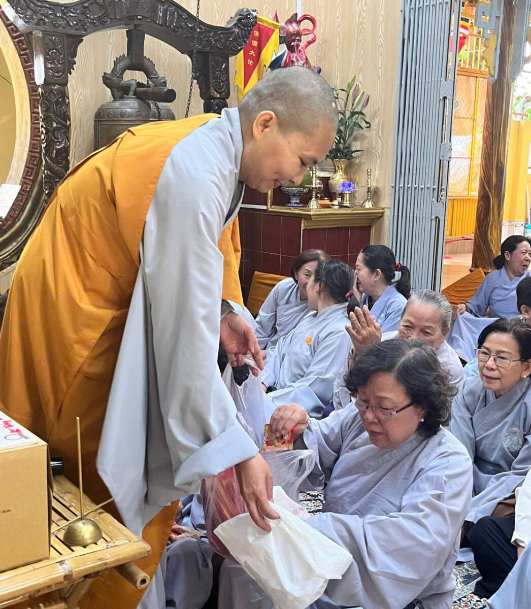 PSO- Sáng nay ngày 25/1/2026 (mùng 7 tháng Chạp Ất Tỵ) Sư cô Thích Nữ Như Hướng, trụ trì chùa Hoa Nghiêm (đường Nguyễn Thượng Hiền, phường Bình Lợi Trung, TP.HCM) đã tổ chức lễ Tổng kết Công tác Phật sự năm Ất Tỵ- 2025 và tặng 160 phần quà Xuân Di Lặc, trị giá 80 triệu đồng, đến đồng bào khiếm thị.