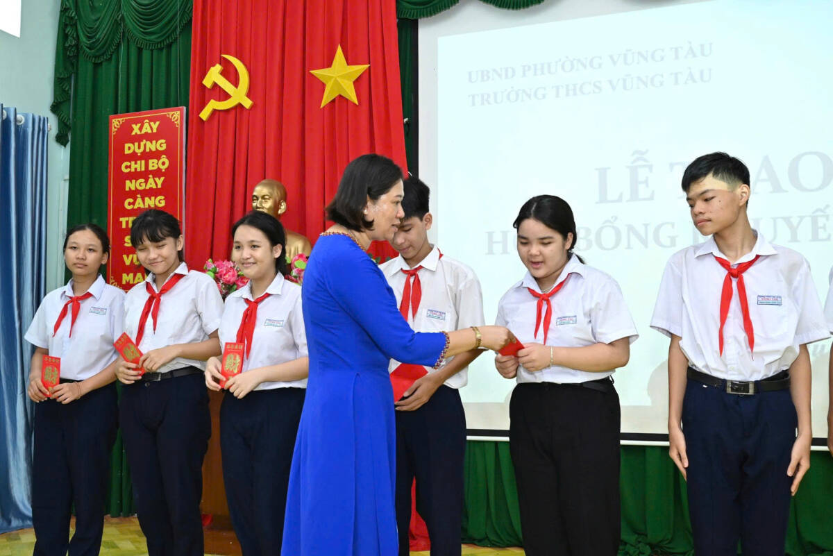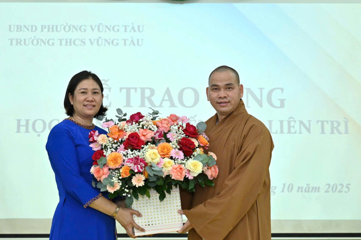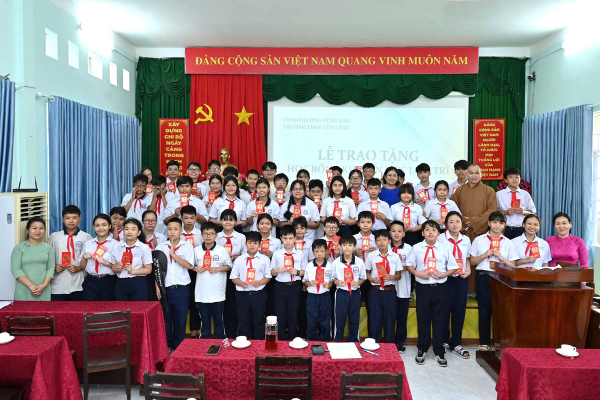 PGĐS – Mùa Trung thu không chỉ là dịp đoàn viên, mà còn là thời điểm để sẻ chia yêu thương. Sáng ngày 6-10, trong tinh thần từ bi và nhân ái của Phật giáo, Quỹ Học bổng Khuyến học chùa Liên Trì (P.Vũng Tàu, TP.HCM) đã trao học bổng đầy ý nghĩa tại Trường THCS Vũng Tàu.