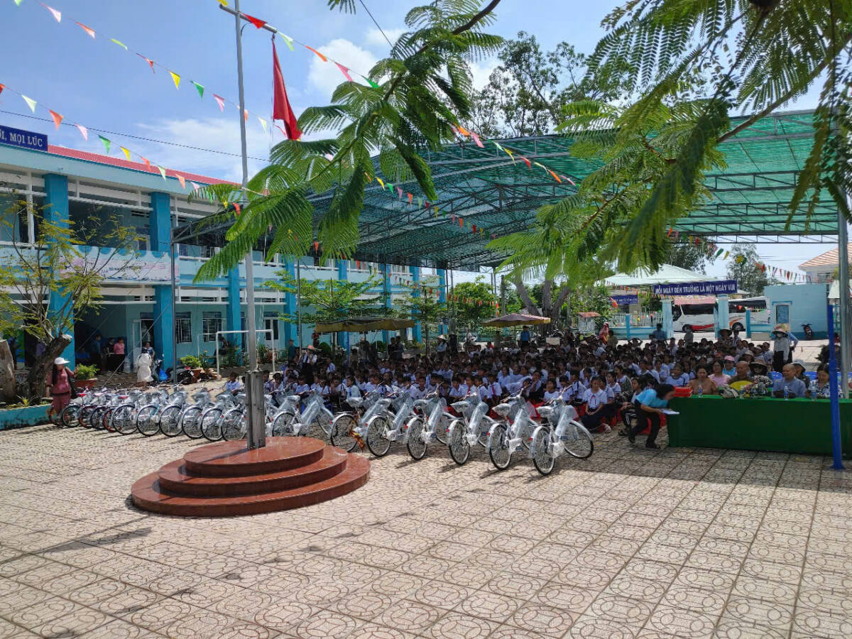 Đoàn đã đến trao 1035 phần quà và 40 xe đạp cho các em tại Trường Tiểu học Bình Tấn 2, xã Bình Tấn (375 phần quà và 20 xe đạp); Trường Tiểu học Mỹ Ngãi, phường Mỹ Ngãi (430 phần quà và 20 xe đạp); Trường Mầm non Mỹ Ngãi, phường Mỹ Ngãi (230 phần quà).