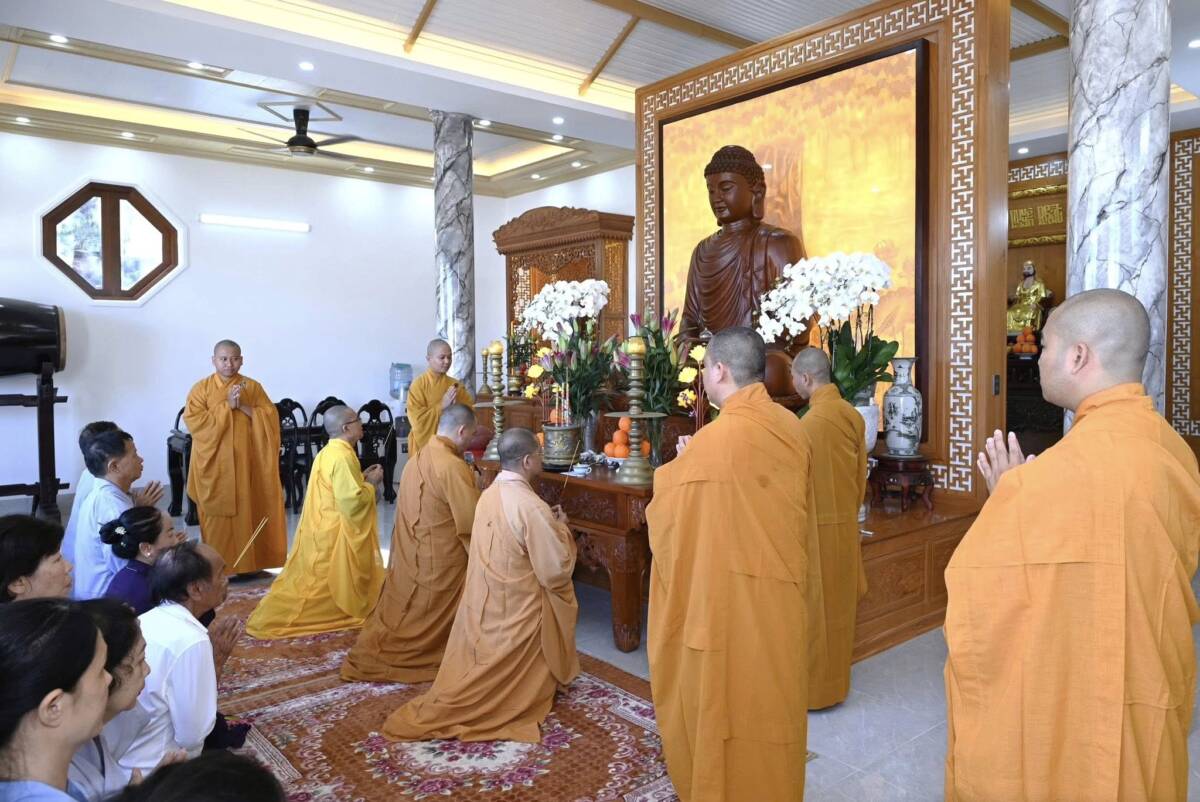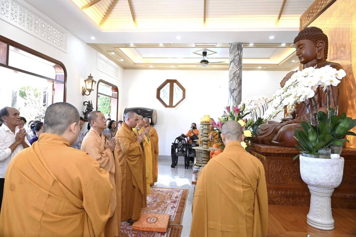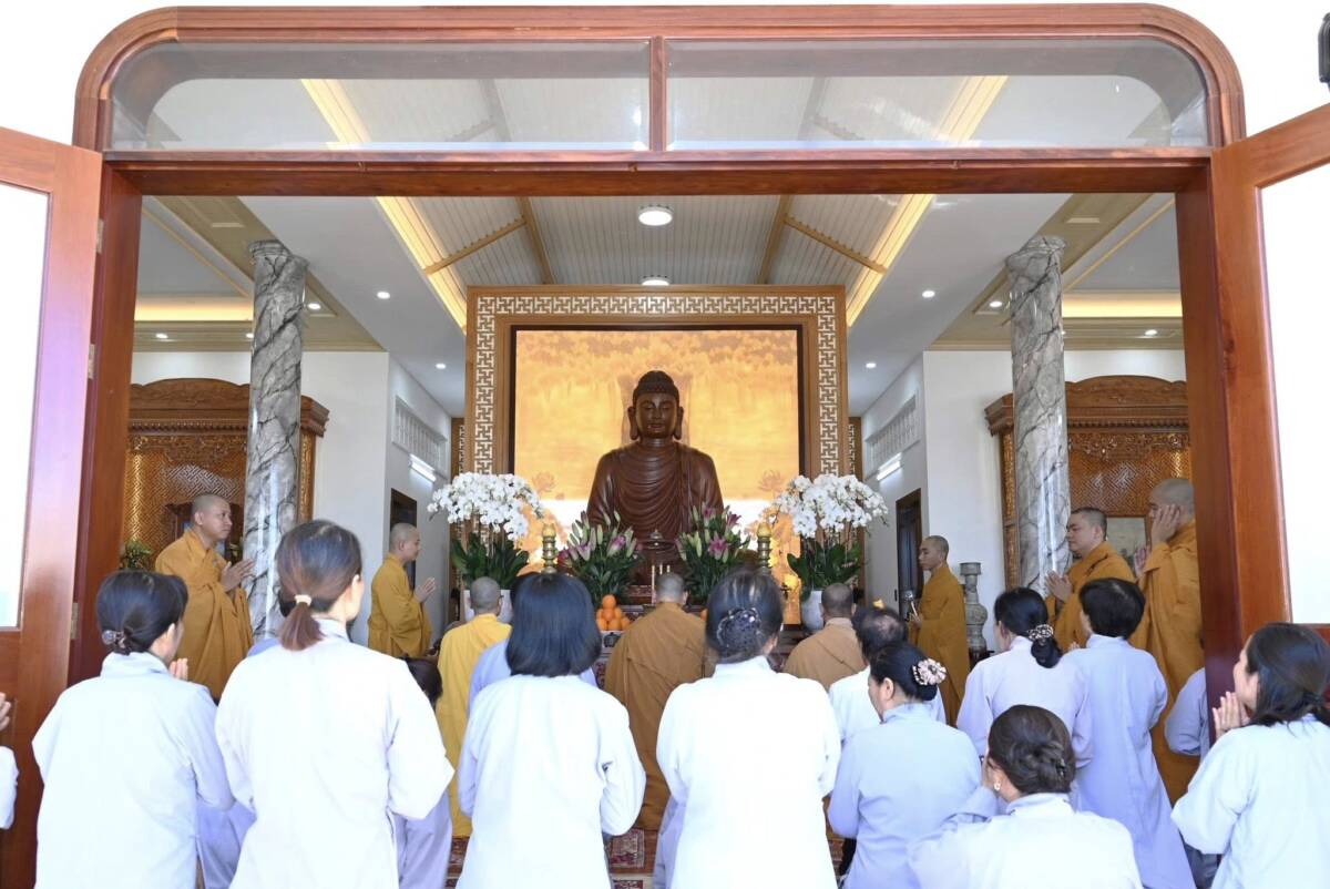Buổi lễ được cử hành theo nghi lễ thiền môn, Thượng tọa Thích Thiện Thông cùng chư tôn đức thực hiện nghi thức niêm hương bạch Phật, đảnh lễ Tam bảo và cử hành nghi lễ sái tịnh, gia trì, chú nguyện và an vị tôn tượng Đức Phật Thích Ca Mâu Ni. Đại chúng đồng xướng niệm hồng danh chư Phật, cầu nguyện thế giới hòa bình, chúng sinh an lạc, Phật pháp trường tồn.