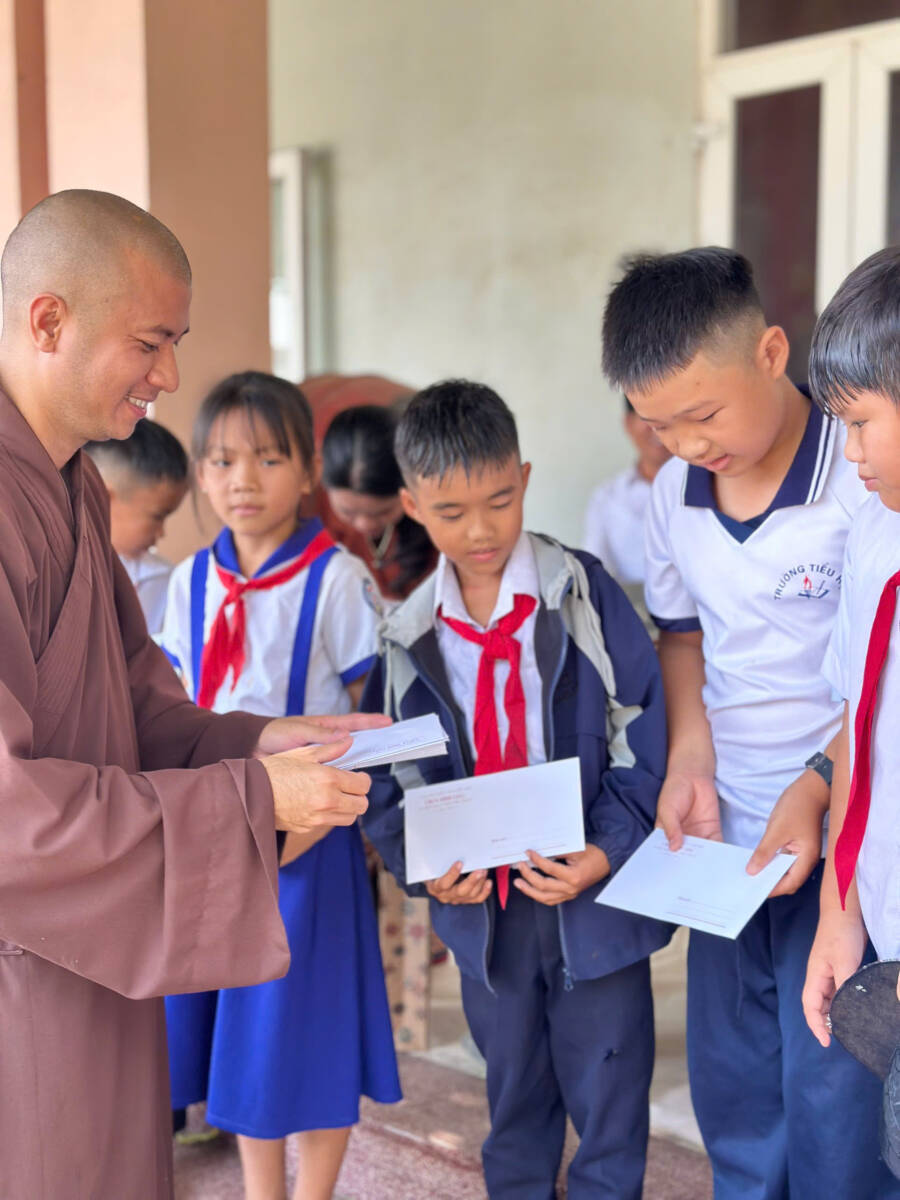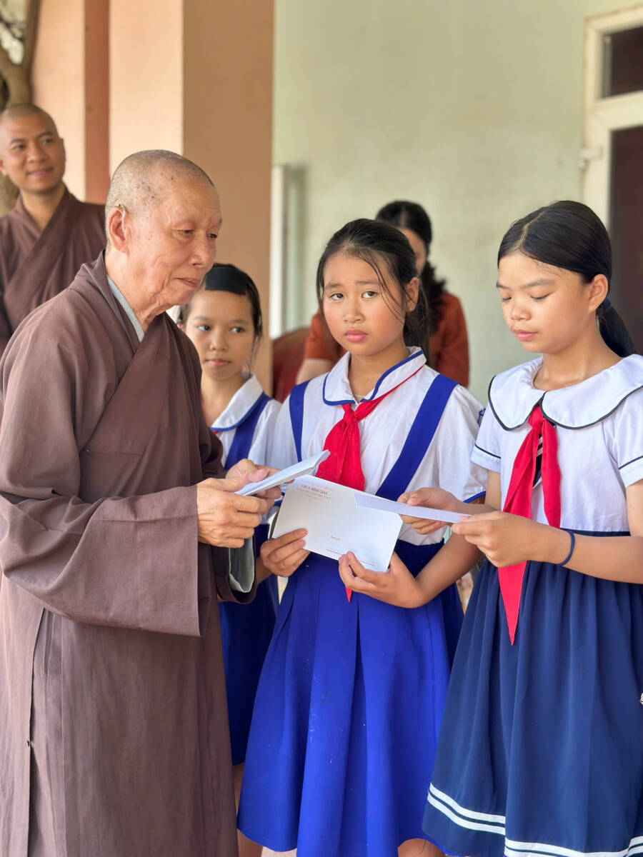 Chương trình trao học bổng do Đại đức Thích Đồng Thuận – Trụ trì chùa Bình Quang khởi xướng, phối hợp cùng chính quyền địa phương, đã trao tặng 100 suất quà đến các em học sinh nghèo hiếu học. Với tổng kinh phí gần 50 triệu đồng, những phong thư và dụng cụ học tập tuy giản đơn nhưng chứa đựng cả một bầu trời hy vọng. Đó là sự kết nối kỳ diệu giữa ánh sáng hoa đăng nơi đạo tràng và những nghĩa cử cao đẹp nơi vùng sâu vùng xa, minh chứng rằng: Tu là để sống đẹp hơn, để phụng sự nhân sinh và mang lại hạnh phúc cho đồng loại.