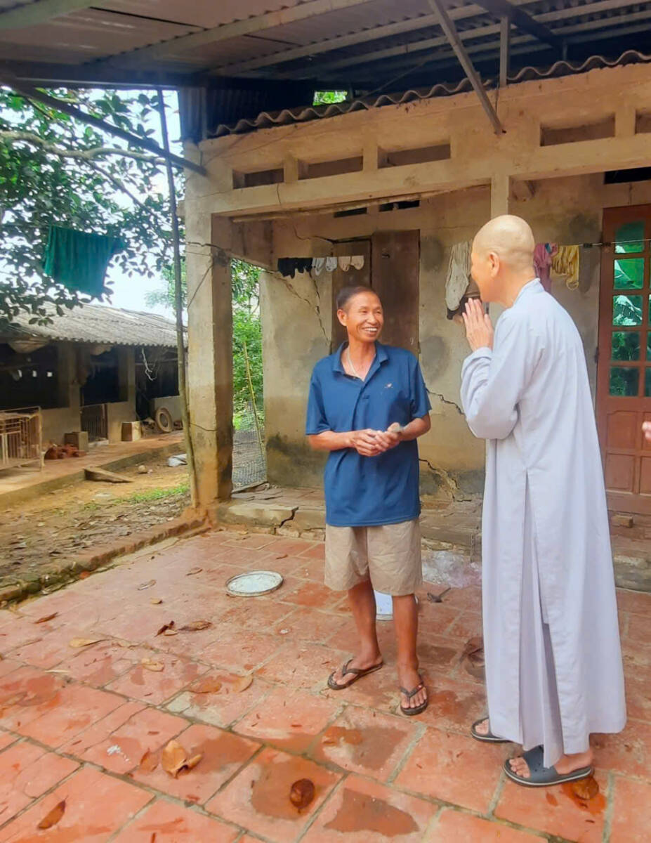 Tại buổi trao quà, Ni trưởng có lời thăm hỏi sức khỏe, chia sẻ với bà con trước những tổn thất về vật chất lẫn tinh thần; động viên bà con cố gắng vươn lên trong cuộc sống.