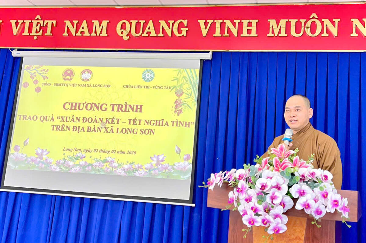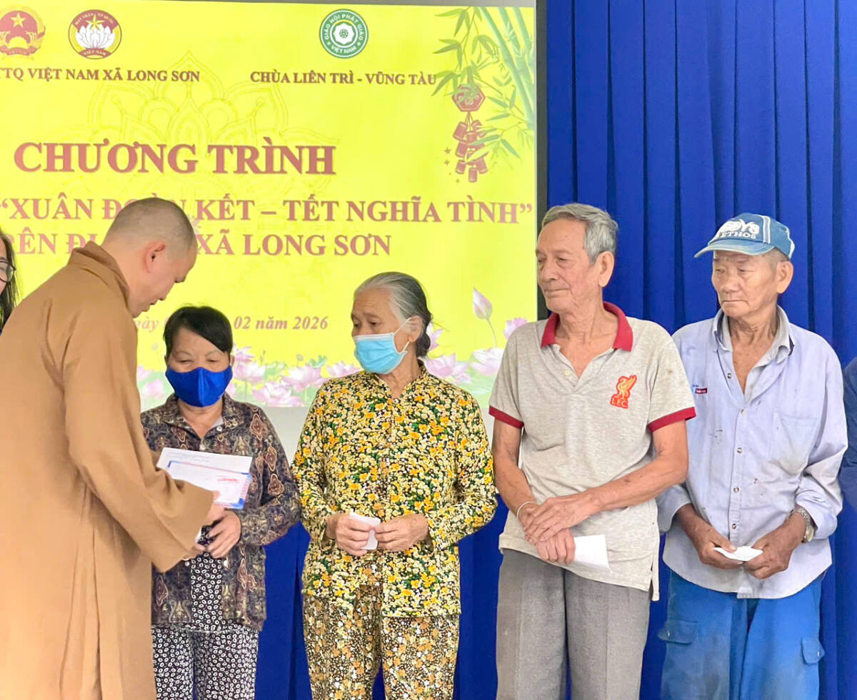 Chiều ngày 2/2 (nhằm ngày 15/12/Ất Tỵ), Thượng tọa Thích Thiện Thông, trụ trì chùa Liên Trì và Phật tử đến chia sẻ 100 phần quà Tết Bính Ngọ 2026 với bà con có hoàn cảnh khó khăn tại xã Long Sơn, TP.HCM.