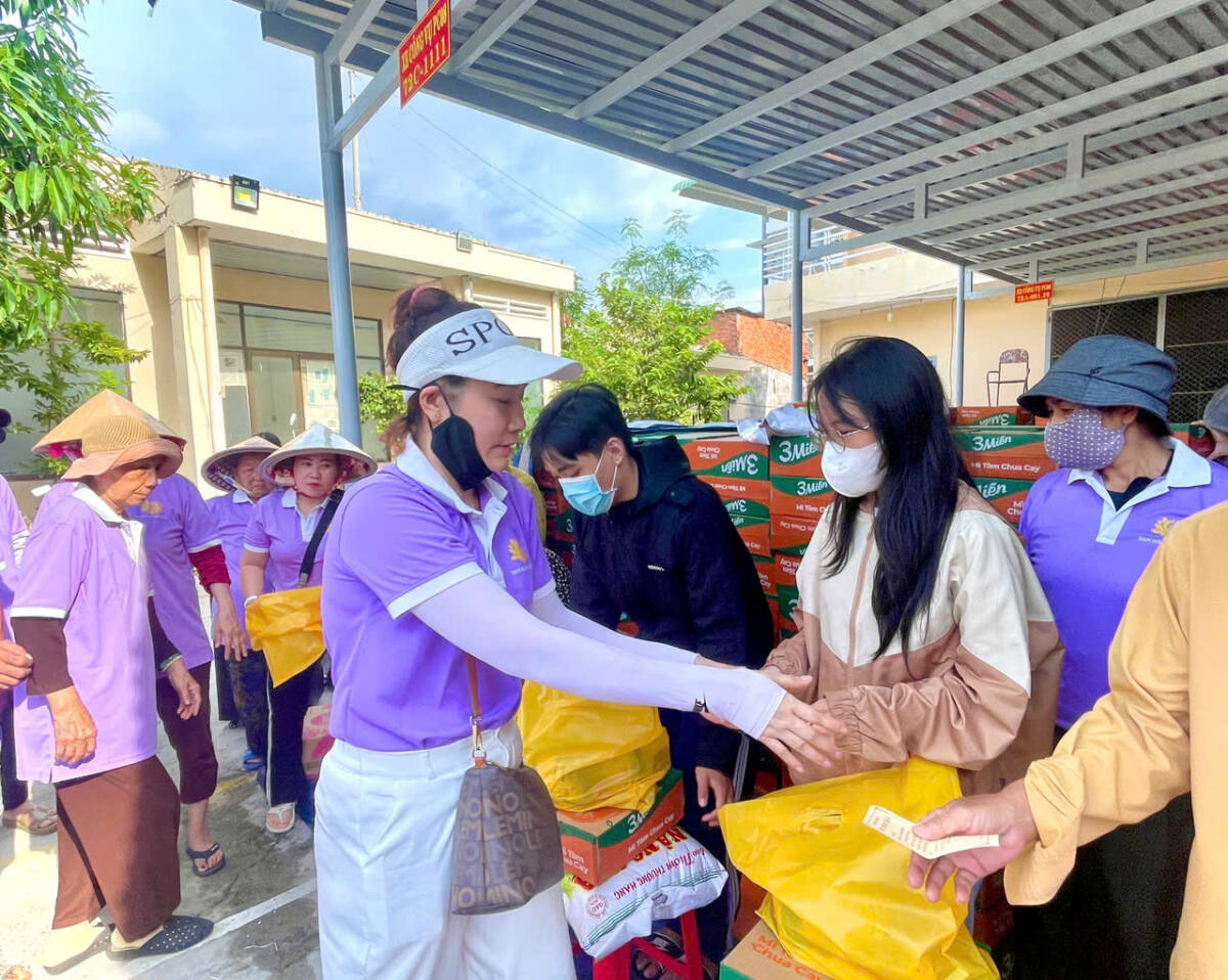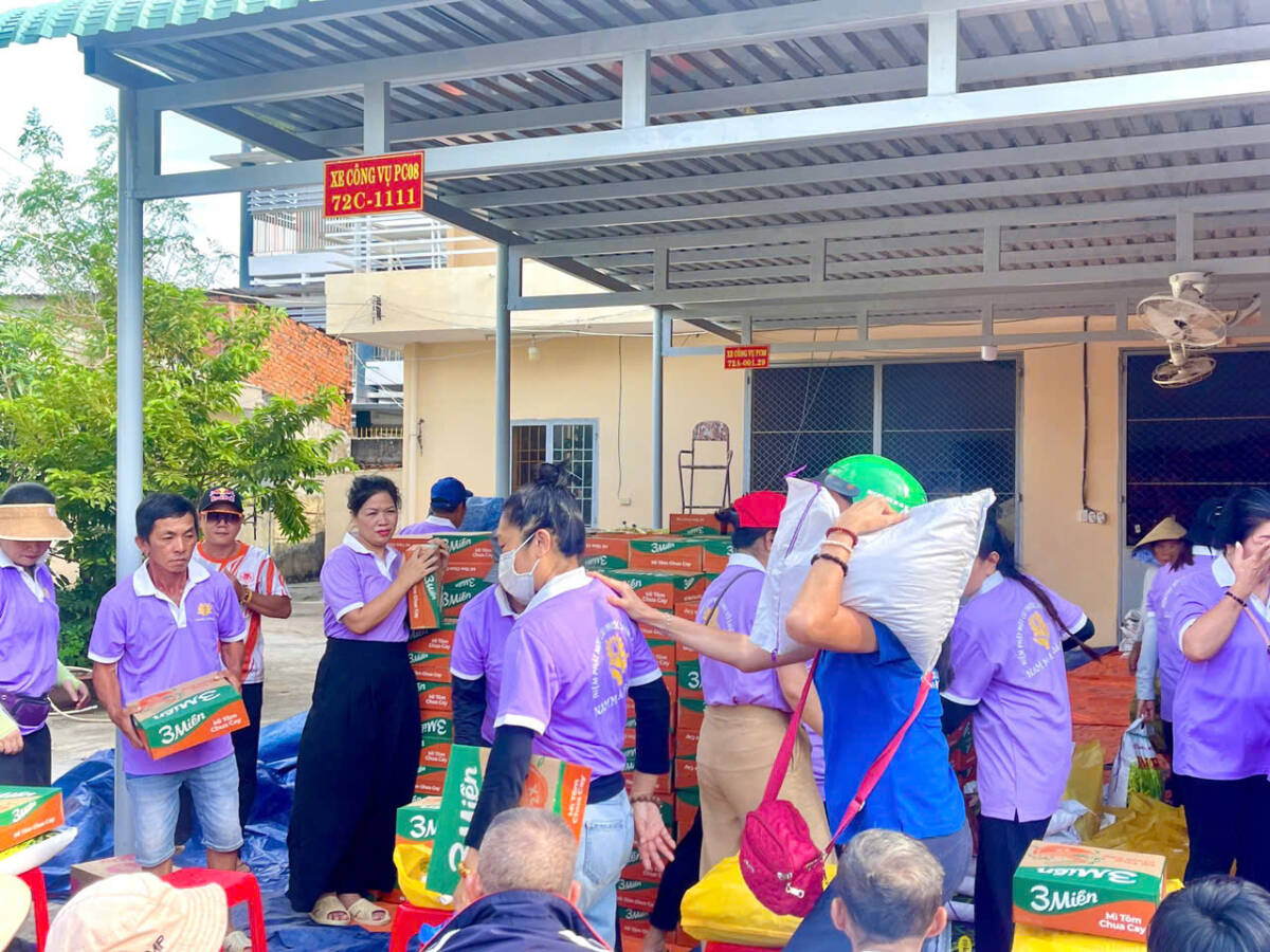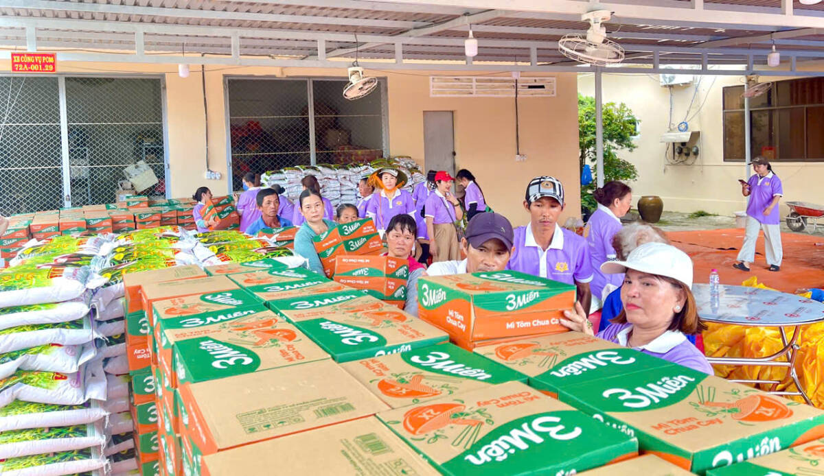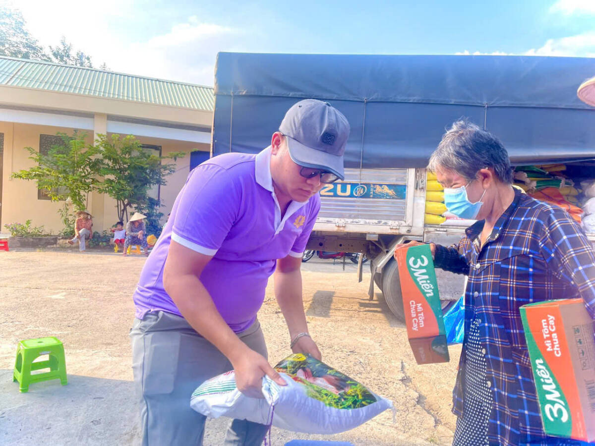 Mỗi phần quà gồm gạo, mì, các nhu yếu phẩm. Tổng trị giá trao quà 332 triệu đồng.
