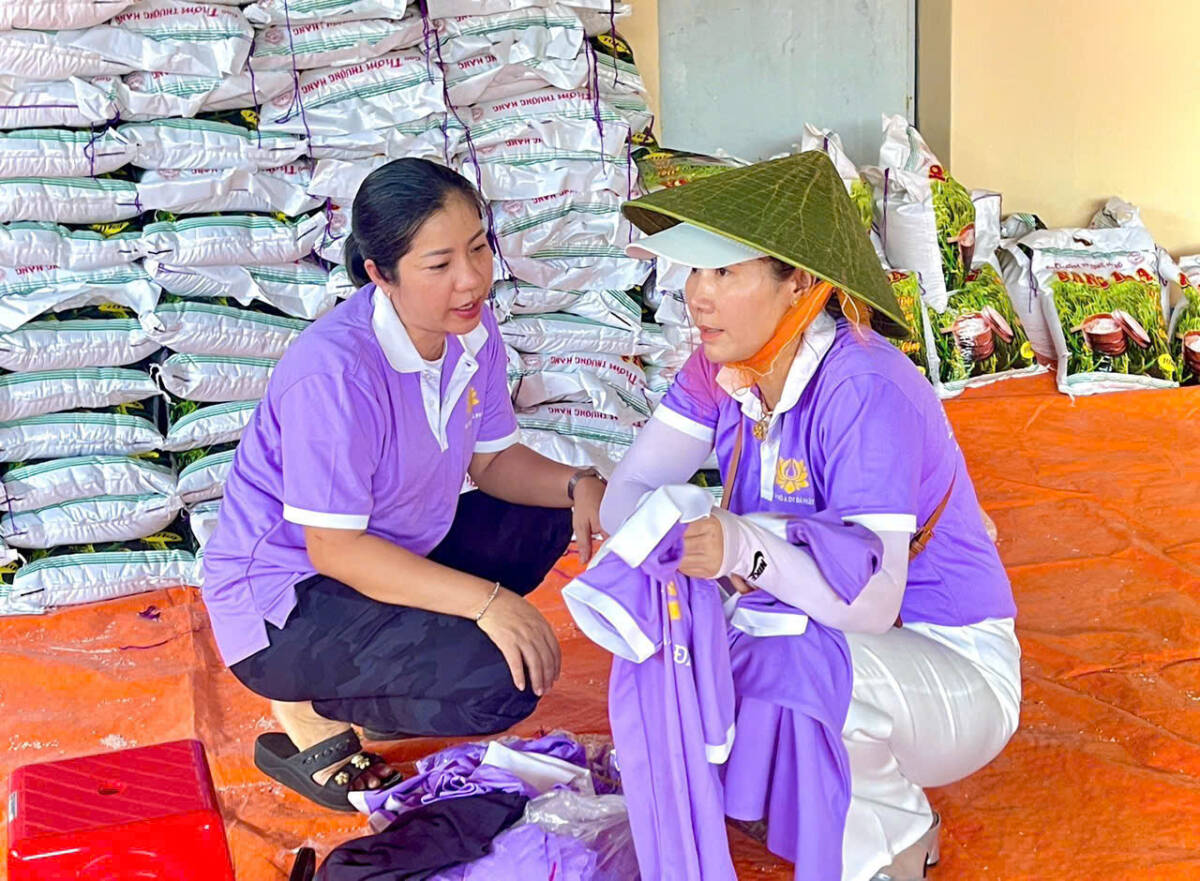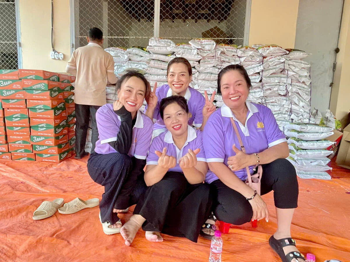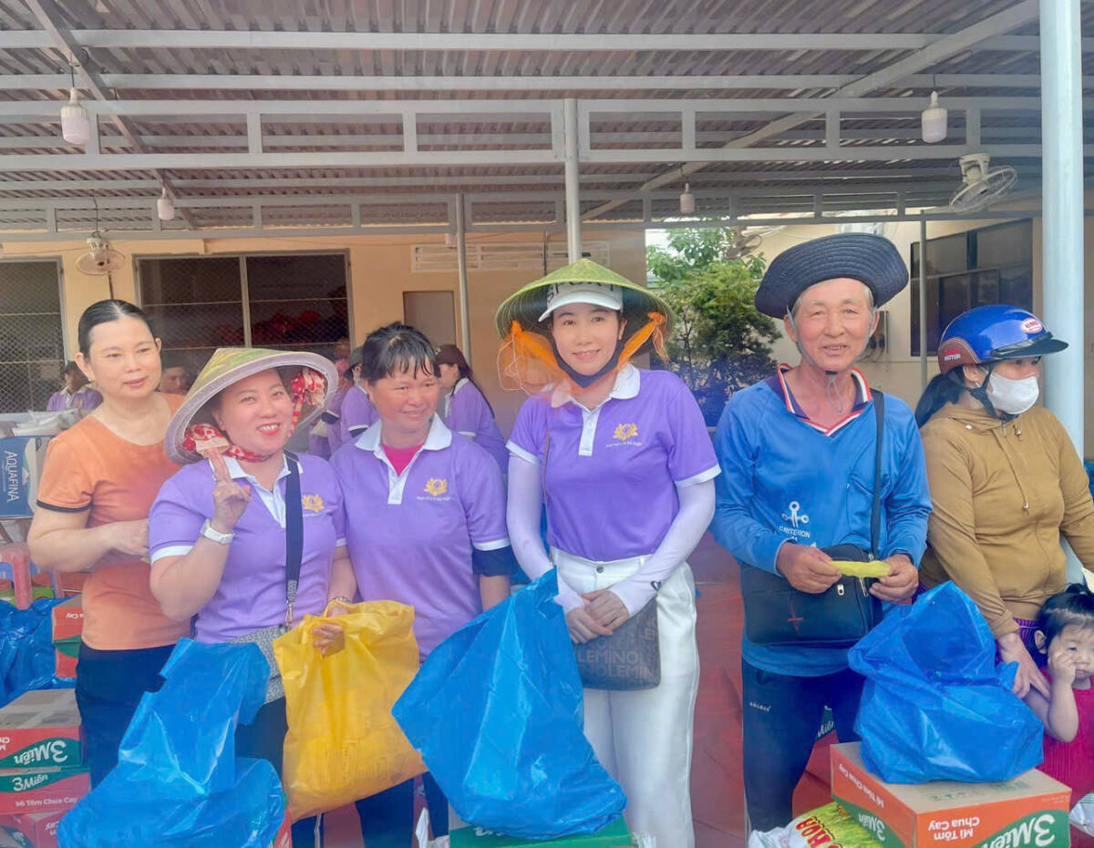 Mỗi phần quà gồm gạo, mì, các nhu yếu phẩm. Tổng trị giá trao quà 332 triệu đồng.