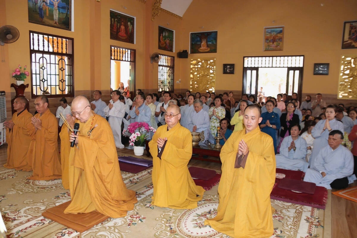 Tại mỗi điểm dừng chân, không gian như lắng đọng trong sự tôn nghiêm khi Hòa thượng Thích Chơn Không cùng quý Chư Tăng và Phật tử niêm hương đảnh lễ, vấn an sức khỏe và gửi lời chúc phúc đến Chư Tăng, Chư Ni trụ trì. Những phần tịnh tài, phẩm vật dâng cúng lên ngôi Tam Bảo không chỉ thể hiện lòng thành kính mà còn mang theo tâm nguyện cầu mong một năm mới an lạc, vạn sự hanh thông cho tất cả chúng sinh.